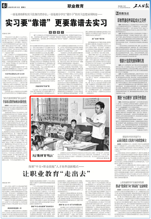 今天(9月13日),《工人日报》刊发新闻《大山“微小学”的“守山人”》。