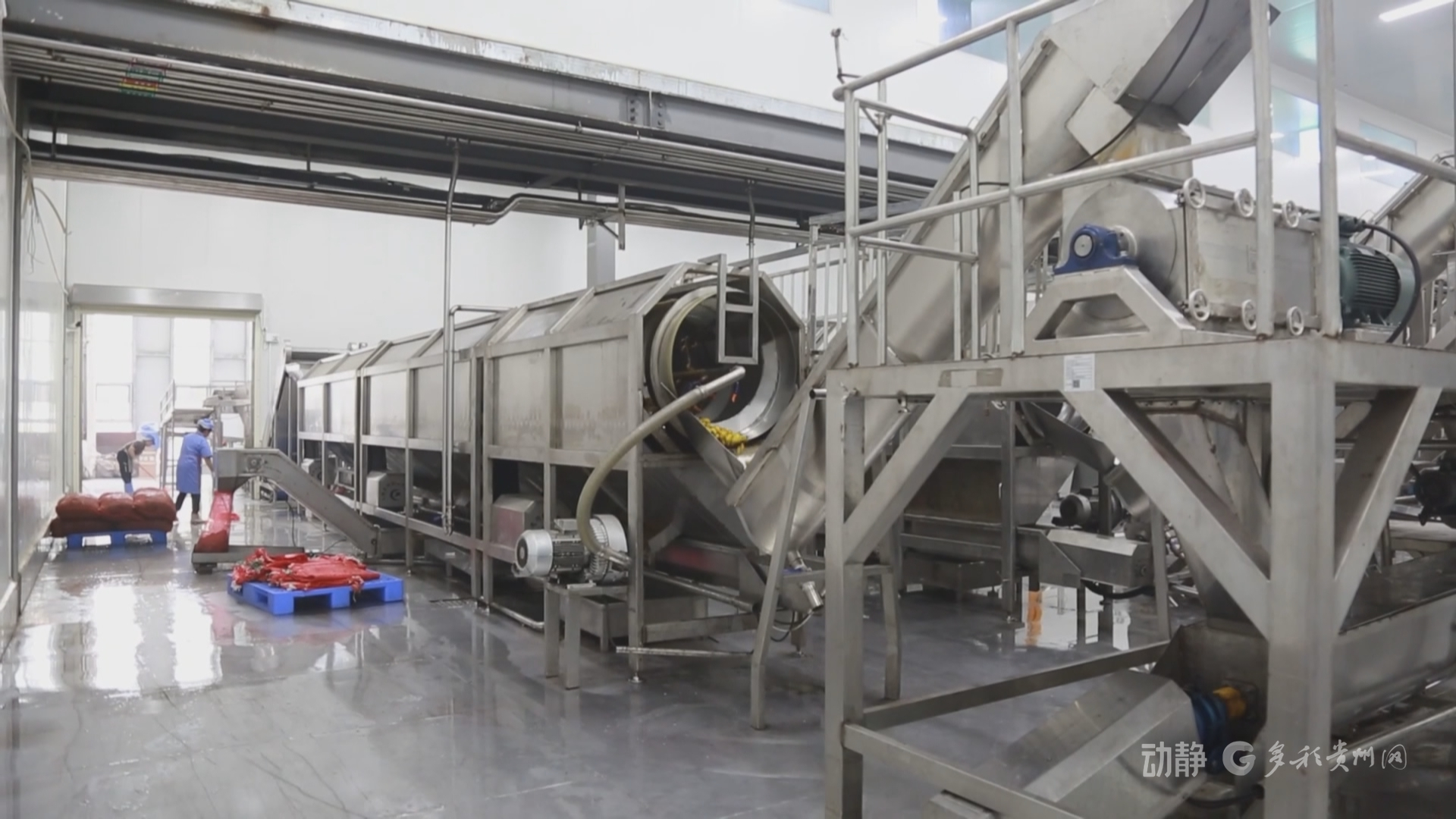 在贵定县的这家农业公司,两条自动化生产线正对刺梨进行清洗、压榨、包装。每天每小时能生产15吨到25吨左右的刺梨原汁,并在8小时内进行压榨完成。