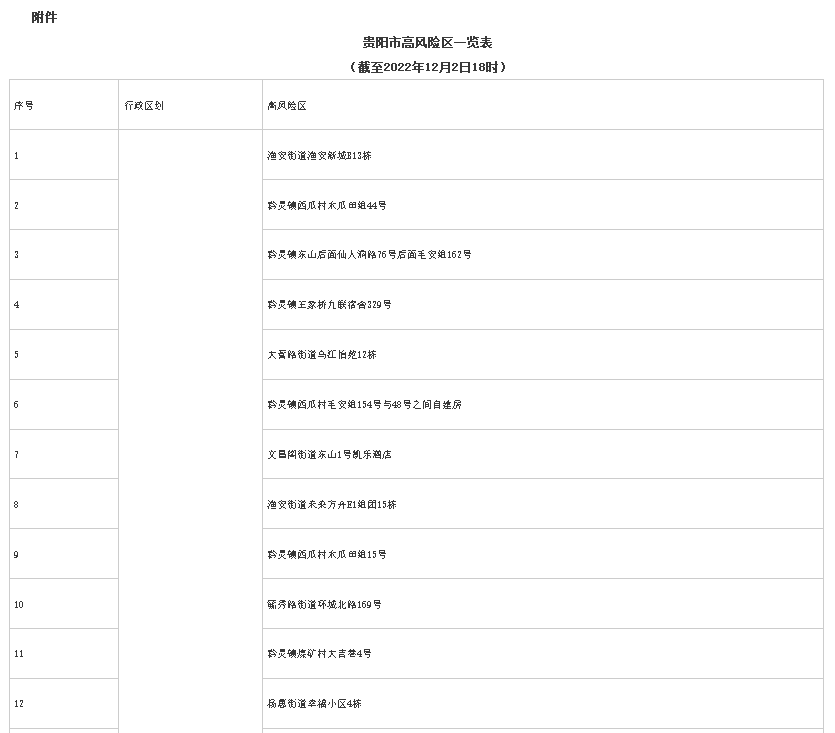 附件:贵阳市高风险区一览表(截至2022年12月2日23时)