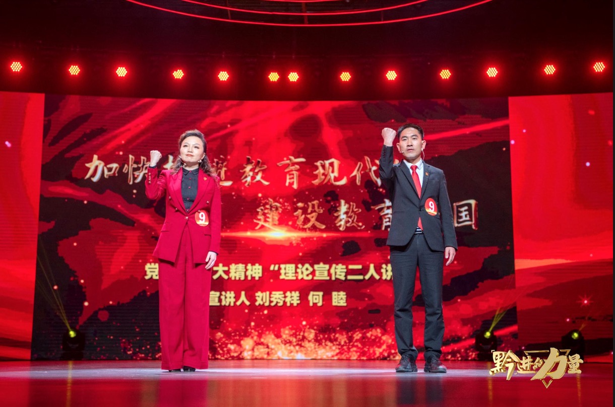 3月9日,由贵州卫视《“黔”进的力量》团队承办的《凝心聚力新征程 踔厉奋发新跨越》贵州省学习贯彻党的二十大精神“理论宣传二人讲”现场展示活动在贵州大学溪山剧场举行。本次展示活动由中共贵州省委宣传部、中共贵州省委党校(省委讲师团)、省社科联主办。