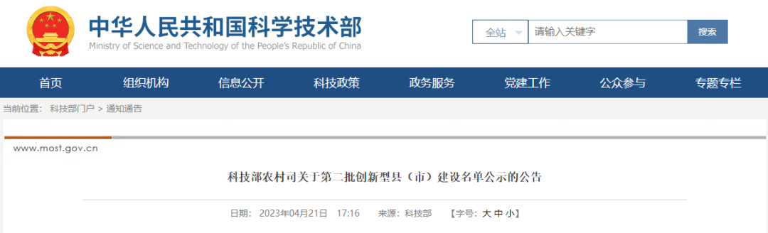 近日,科技部农村科技司确定第二批创新型县(市)建设名单,现予以公示,公示时间为2023年4月21日至4月27日。其中,贵州省清镇市、龙里县上榜。