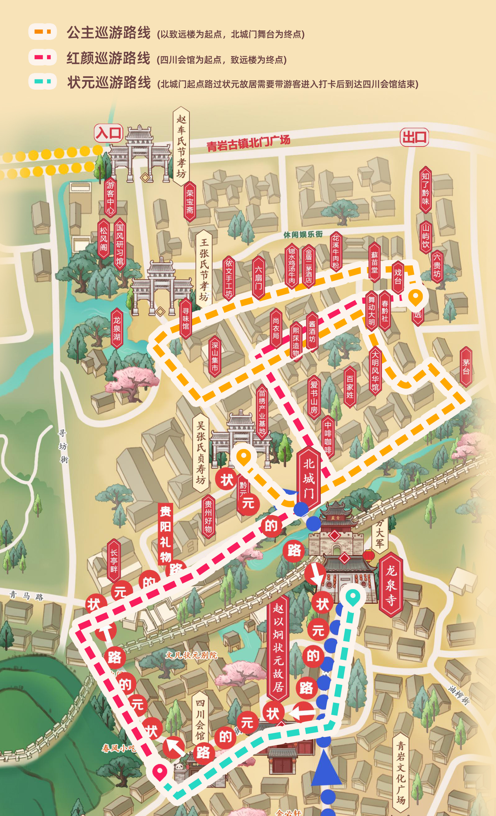 据了解,大明志之“状元的路”作为国庆期间青岩古镇亮点产品,在玩法和体验上做了不同程度的升级,在保证趣味性的同时,力求还原历史风貌。“状元的路”三条巡游路线串联起北城门、四川会馆、状元故居、致远楼等标志性景点,游客在参与互动的同时,也能深度游览古镇精华景点,实现文化体验与观光游览的完美结合。