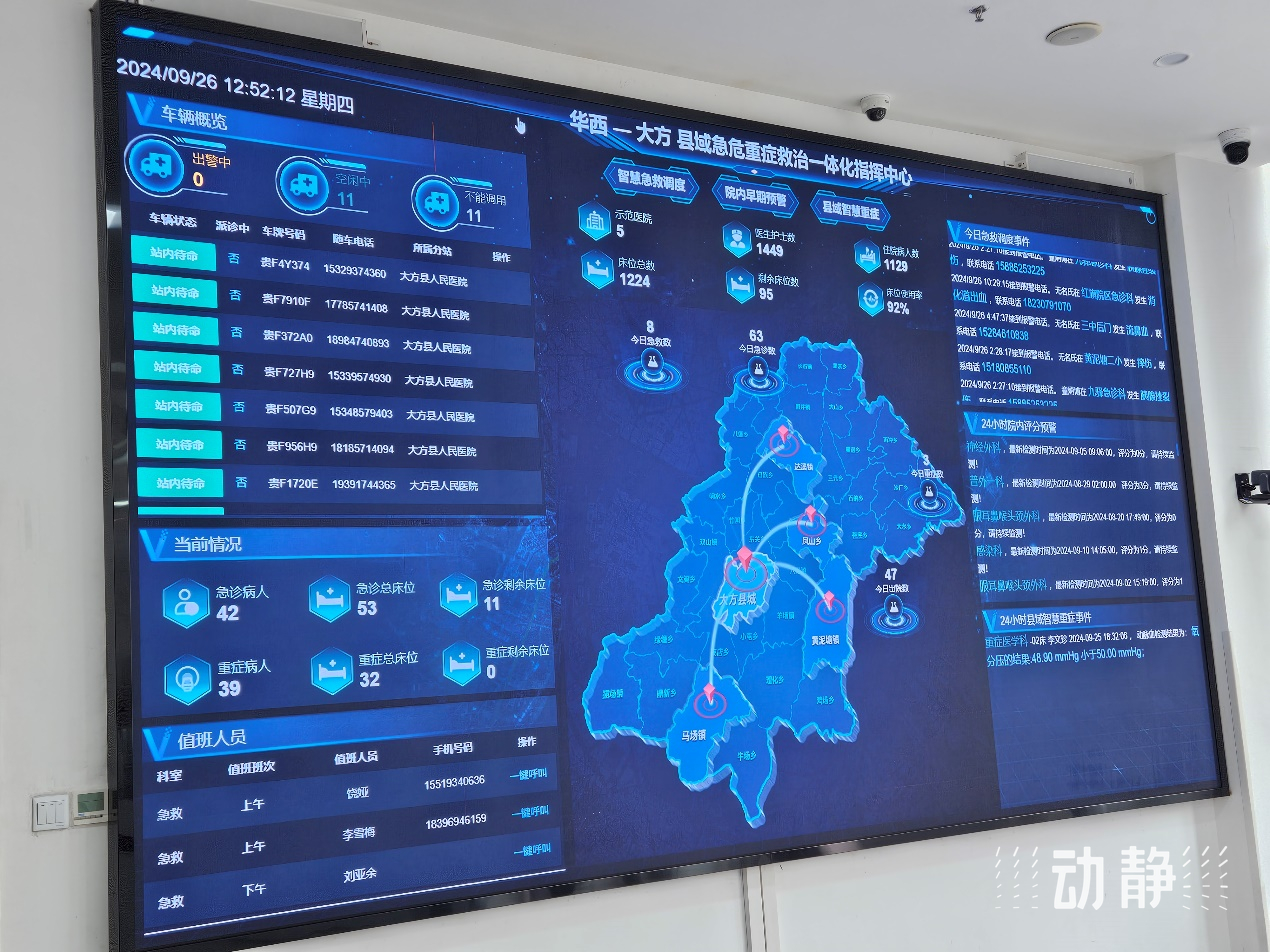 “在急危重症救治一体化中心基础上,华西医院帮扶新增了5G移动查房车,配备了四川大学华西重症远程教学、会诊、查房、会议音视频等系统,可以保障大方县人民医院危重症患者能实时得到华西重症团队的远程指导。同时,ICU医护人员能实时接收到华西重症团队的远程培训。”大方县人民医院重症医学科主任龙江超介绍,这样的医疗帮扶可以减少危急重病人的救治半径,提升紧急救治能力,助力大病不出县。