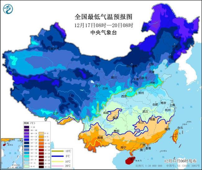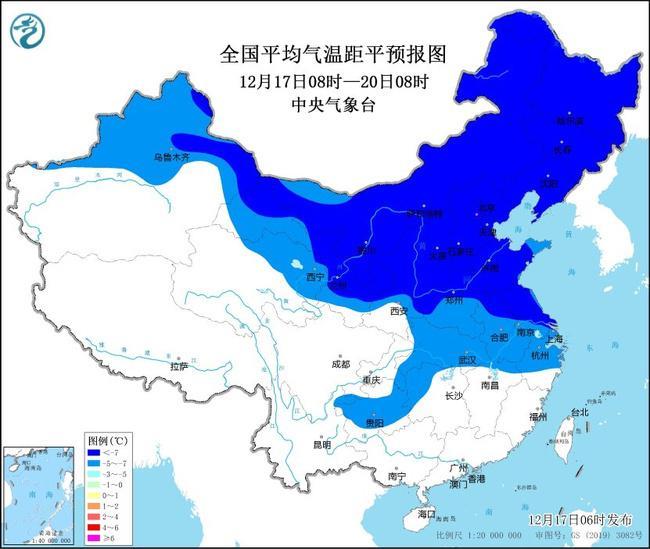 受寒潮和后续冷空气影响,未来一周,我国大部地区气温将持续偏低。预计12月17日08时至20日08时,新疆北部、西北地区中东部、内蒙古、华北地区、东北地区、黄淮、江淮、江汉、江南北部、贵州等地部分地区日最低气温较历史同期偏低5℃以上,其中西北地区东部、内蒙古、东北地区、华北地区、黄淮中东部、江淮东部等地部分地区日最低气温较历史同期偏低7℃以上,最低气温0℃线将位于贵州南部至江南北部一带。
