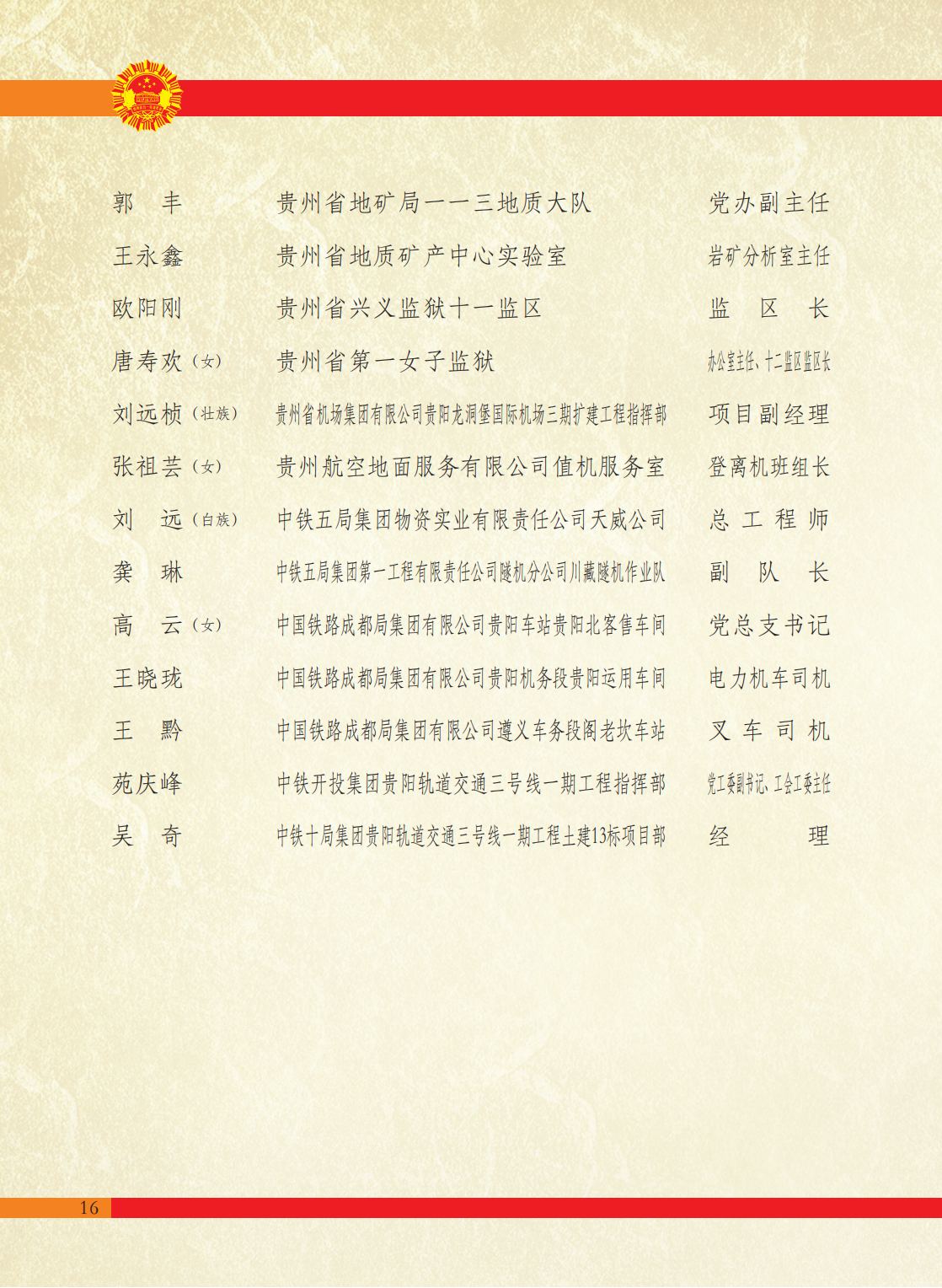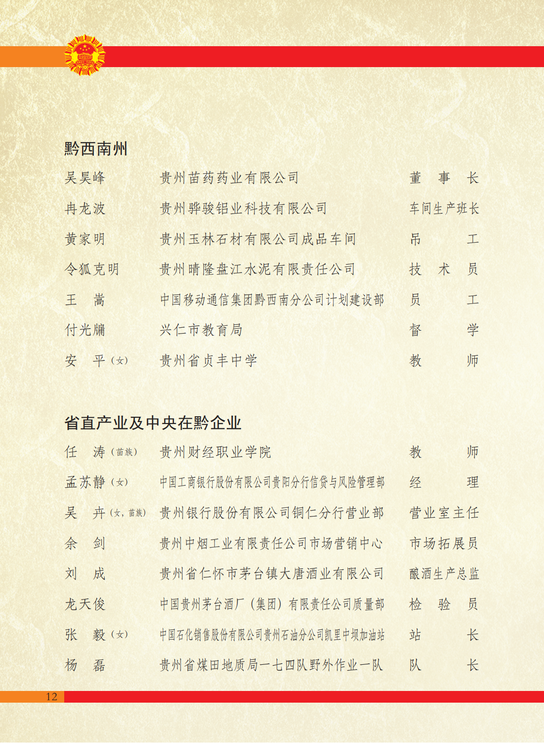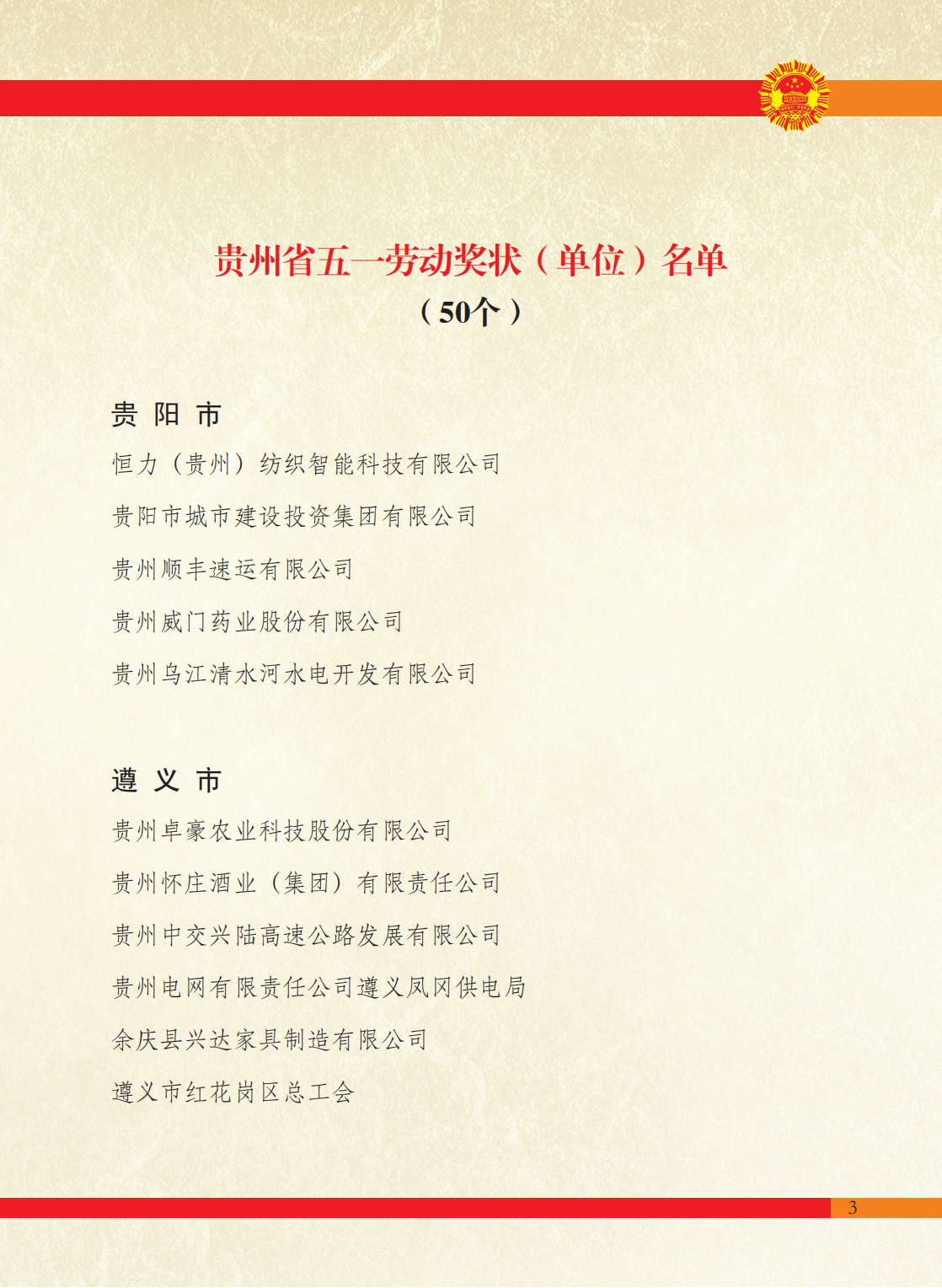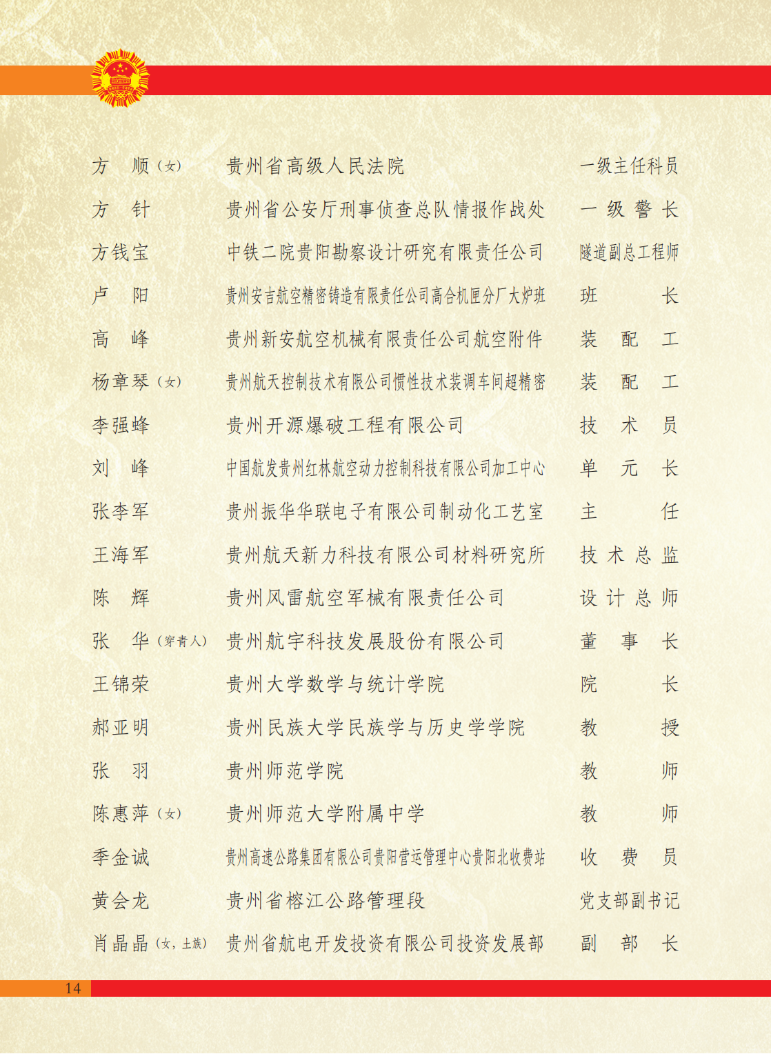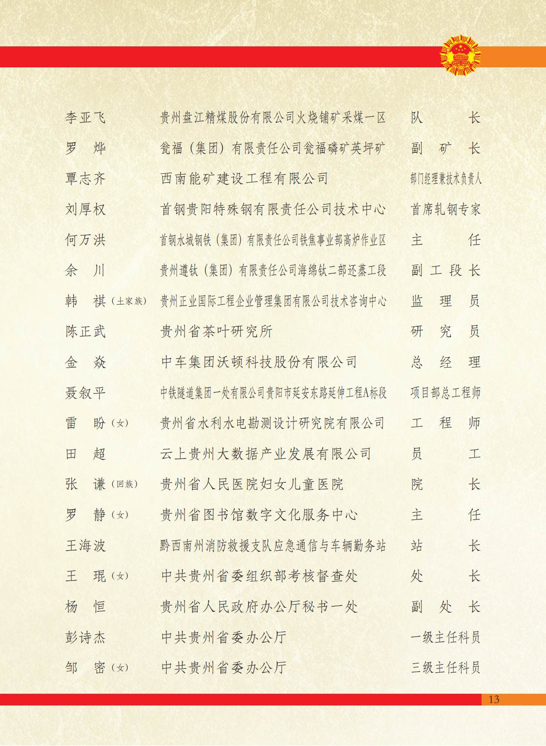 在50个“贵州省五一劳动奖状”中,非公有制经济组织21个,占比41.1%;在160名“贵州省五一劳动奖章”中,产业工人67名,占比41.87%,其它一线职工或专业技术人员38名,占比23.75%,科教人员32名,占比20%;职称方面,高级工及中级以上专业职称人数达102名,占总数的63.75%。