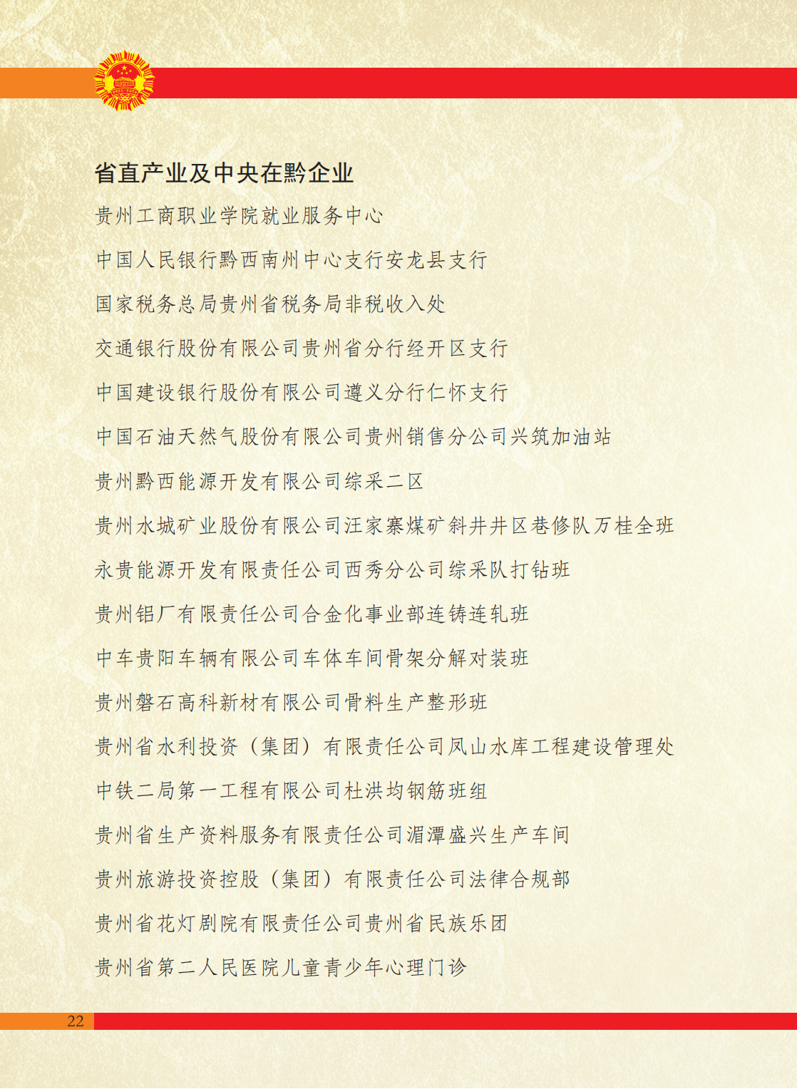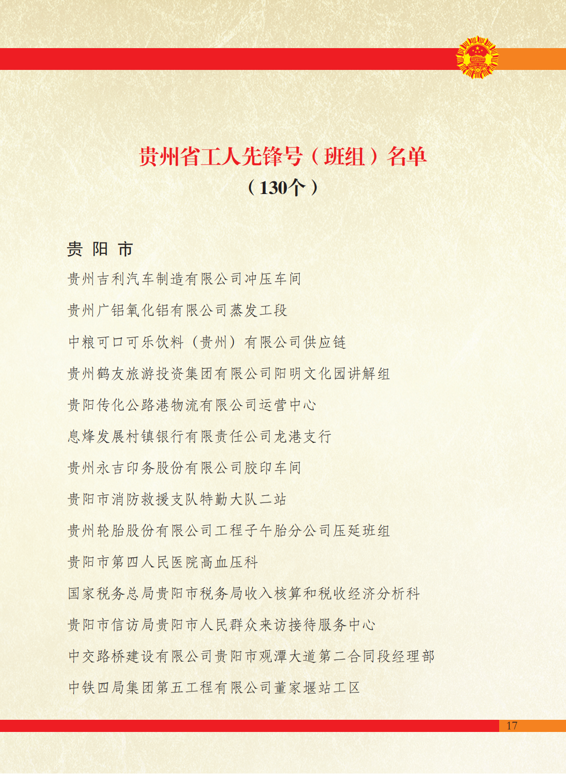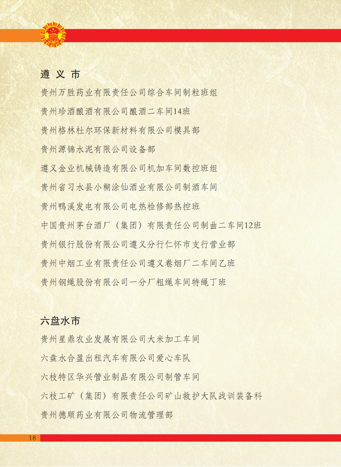在130个“贵州省工人先锋号”推荐集体中,企业班组(科室)106个,占比80.9%;非公有制集体50个,占比38.1%。