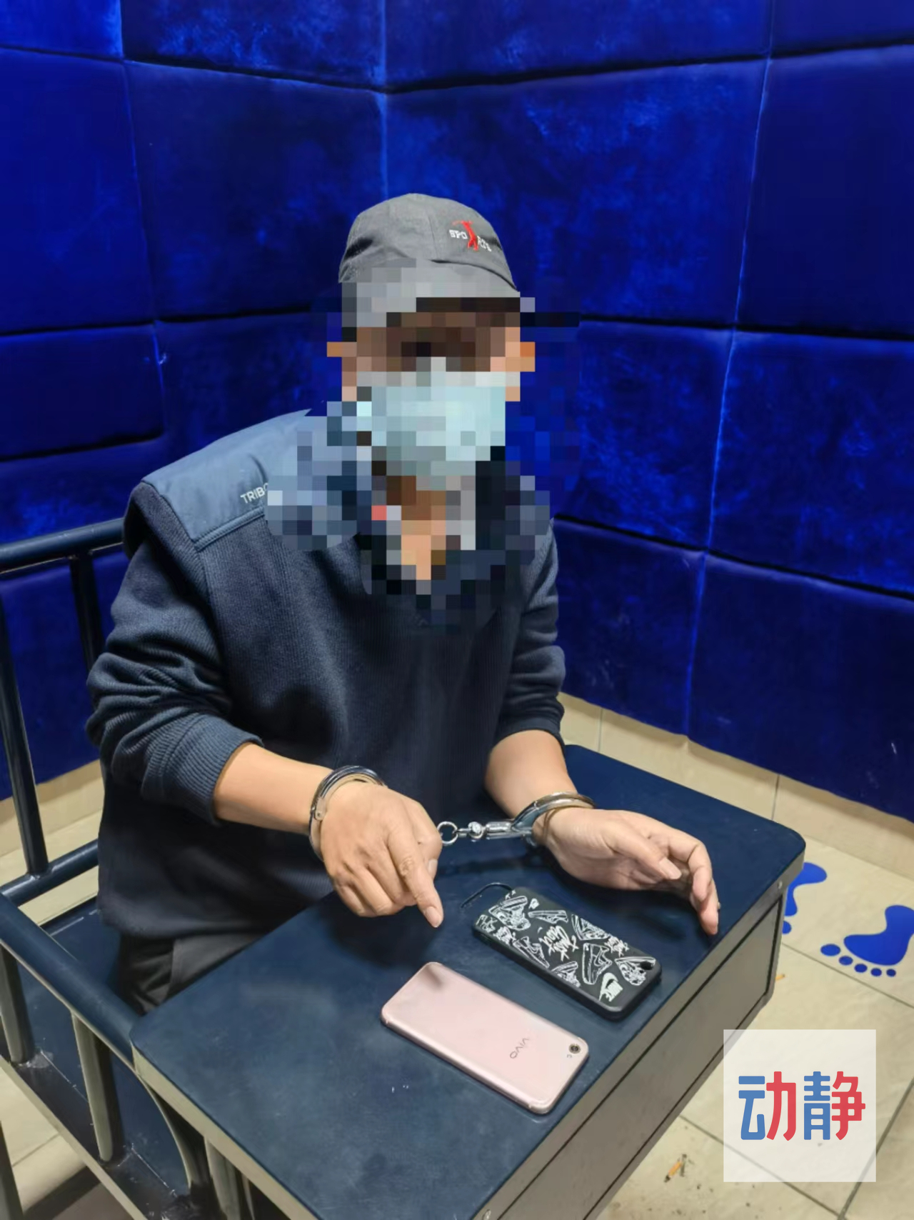接警后,民警根据旅客提供信息,立即调看案发时车站相关区域视频,发现在小胡睡着后,无意中将放在扶手上充电的手机推落在地。随后,一名身穿黑色外套、头戴鸭舌帽的男子靠近小胡按摩椅旁,四处观望后,拿走手机快速离开现场。经视频行踪分析,9时35分,民警在第三候车室厕所门口抓获该男子,从其衣袋里查获被盗手机。
