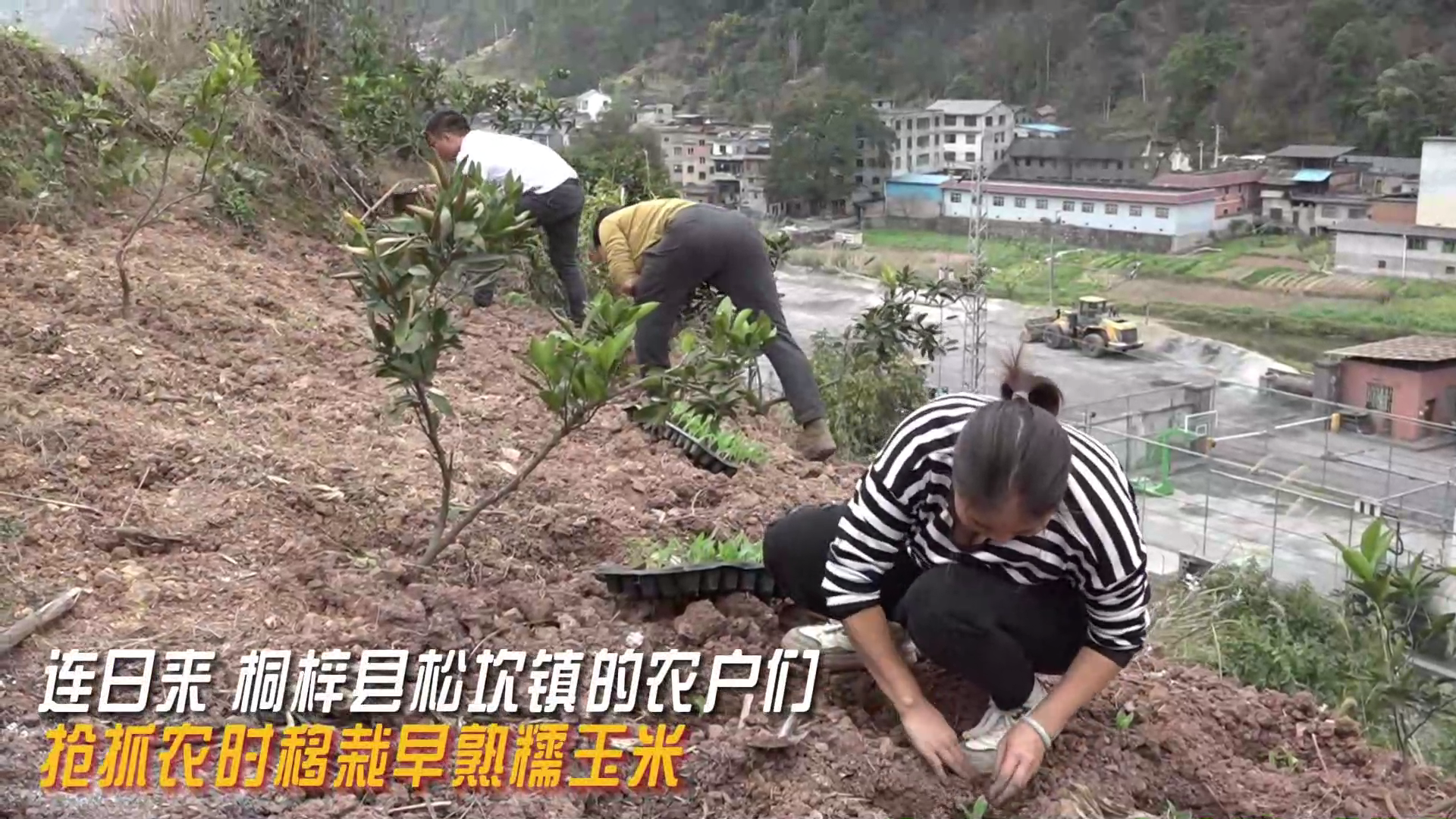 人勤春来早,田间农事忙。连日来,桐梓县松坎镇的农户们抢抓农时移栽早熟糯玉米,力争在新的一年里有好收成。松坎镇今年一共种植早熟糯玉米500余亩,预计5月份上市。下一步,该镇还将陆续发展大豆玉米带状复合种植3000亩、高粱2000亩、水稻2000亩、辣椒示范种植200亩。