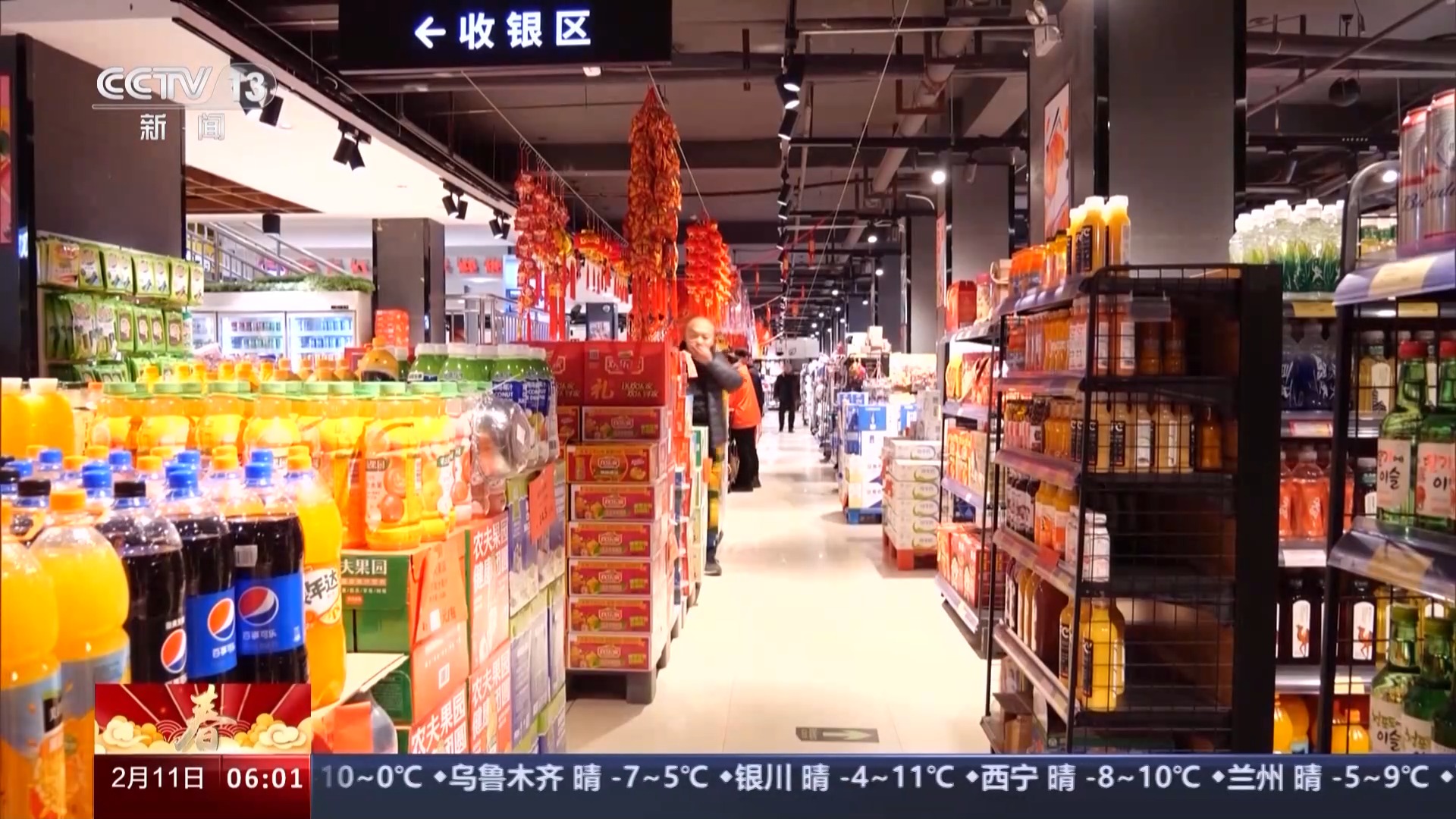 除夕,我国部分重点大型连锁超市即时零售销售额同比增长约20%。