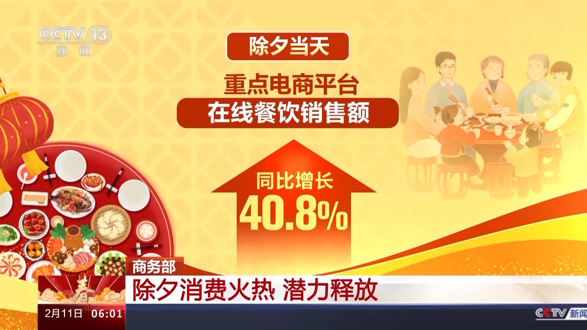 商务部大数据监测显示,除夕我国消费火热,即时零售、服务消费等较大幅度增长,消费潜力不断释放。