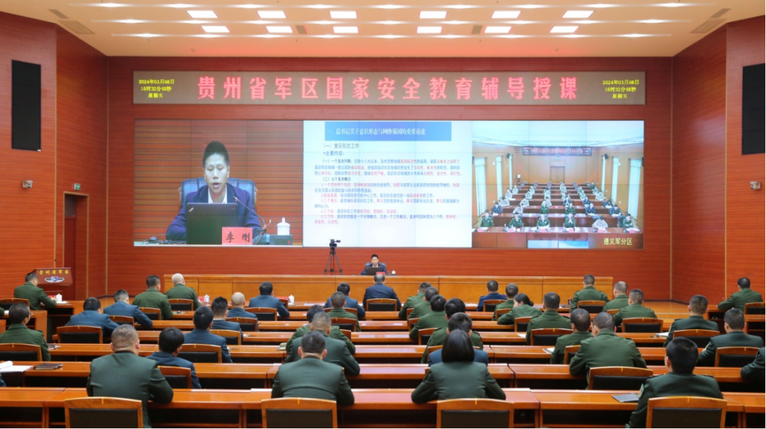 3月8日,贵州省军区组织开展国家安全教育,认真贯彻落实预防教育制度,邀请省国安厅和省委网信办领导为全区官兵、文职人员和职工作国家安全教育辅导授课。省军区少将副政治委员兼纪委书记韩江洲参加听课。