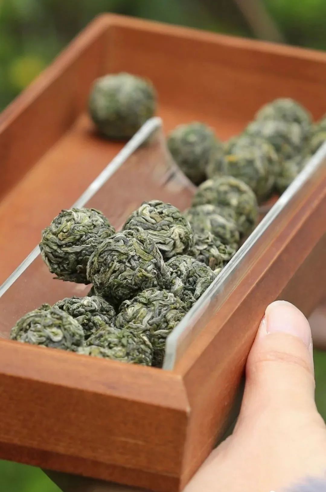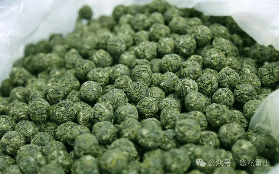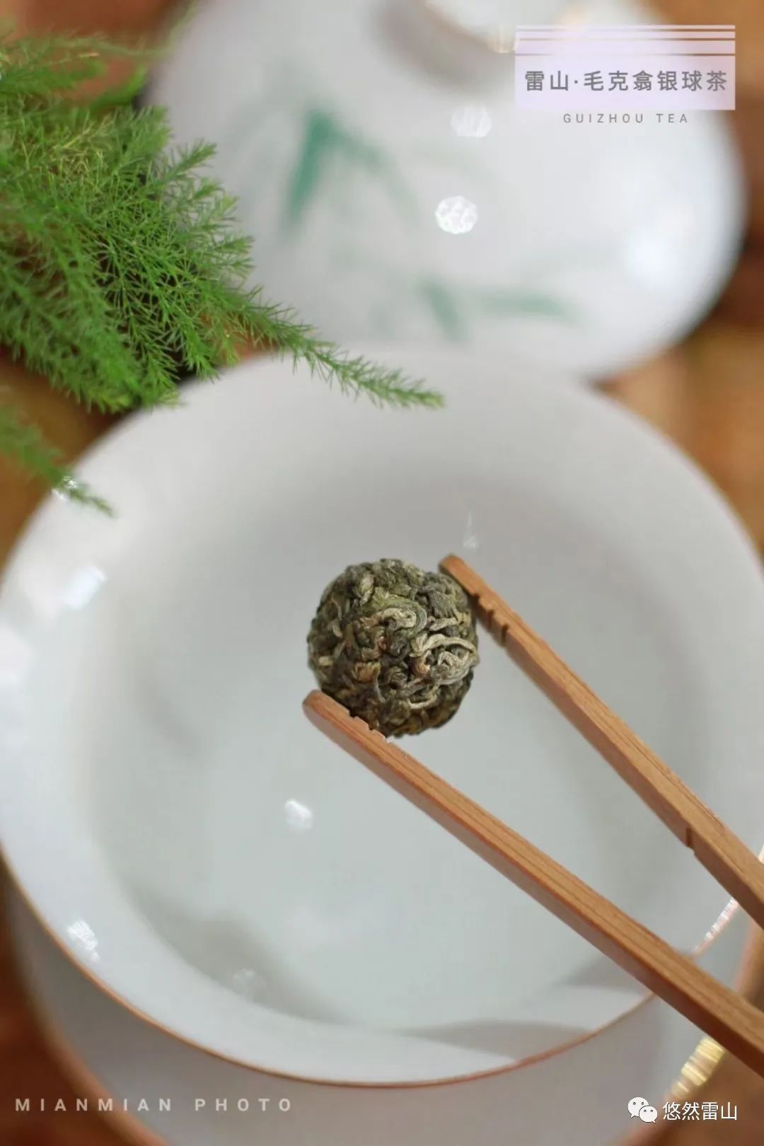 国家地理标志保护产品--雷山银球茶,是贵州绿茶的典型代表,获得贵州绿茶茶王荣誉,是百年世博中国金奖名茶。雷山银球茶采用雷公山国家级自然保护区腹地海拔 1200 米至 1600 米的生态茶园优质鲜叶茶青为原料,经“摊青——杀青——揉捻——回炒——造型——烘干——提香”的工艺加工而成的直径 18-20 毫米的球体特形茶,约重 2.5 克。雷山银球茶因与苗族银饰齐名,故用“银”字开头,取名“银球茶”,内含丰富的氨基酸、茶多酚等元素。冲泡后叶底嫩匀完整、汤色黄绿明亮、栗香味浓醇厚、香气高雅持久、鲜爽回甘,耐于冲泡。