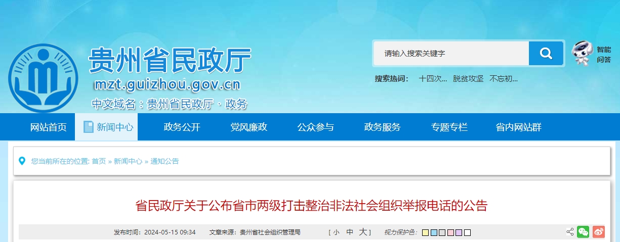 1.贵州省民政厅打击整治非法社会组织举报电话:0851-86857904,邮箱:1044353320@qq.com;