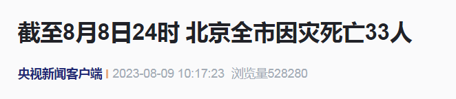 北京市委常委、市政府常务副市长夏林茂在北京市防汛救灾工作情况新闻发布会现场表示:此次洪涝灾害共造成近129万人受灾,房屋倒塌5.9万间,严重损坏的房屋达到了14.7万间,农作物受灾面积22.5万亩,目前这些灾害损失仍是阶段性的数据,造成的财产损失还在持续统计中。让我们感到特别痛心的是,截至8月8日24时,全市因灾死亡33人,主要由洪水冲淹、冲塌房屋等原因造成,因抢险救援牺牲5人,还有18人失踪,其中包括1名抢险救灾人员。在此我代表北京市委市政府向因公牺牲同志和不幸遇难者表示沉重的哀悼,向他们的家属表示最诚挚的慰问,我提议大家起立,为遇难人员默哀。