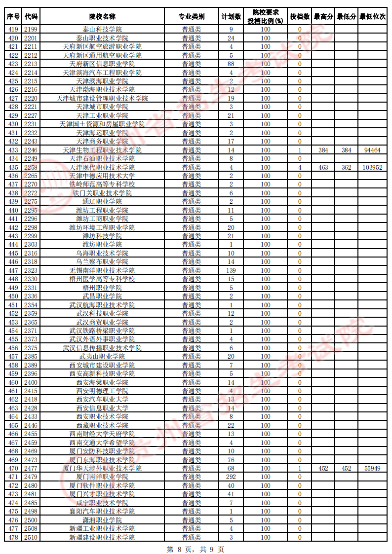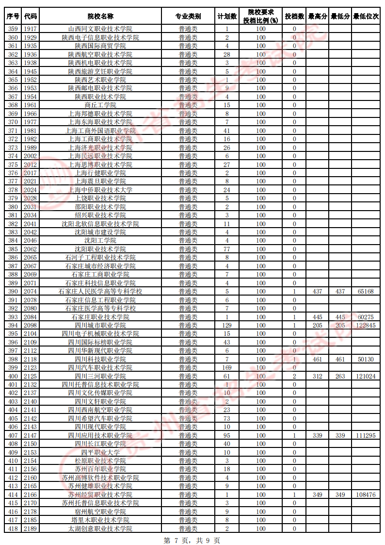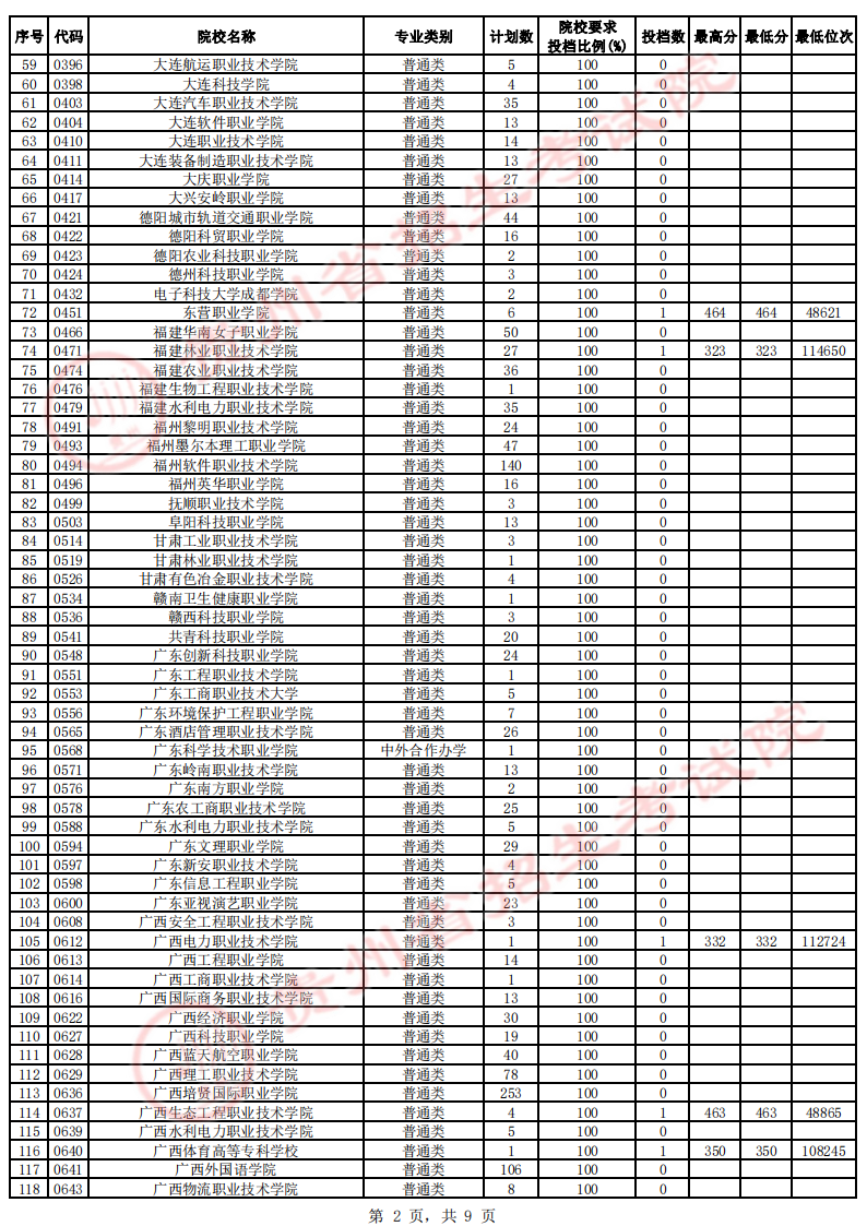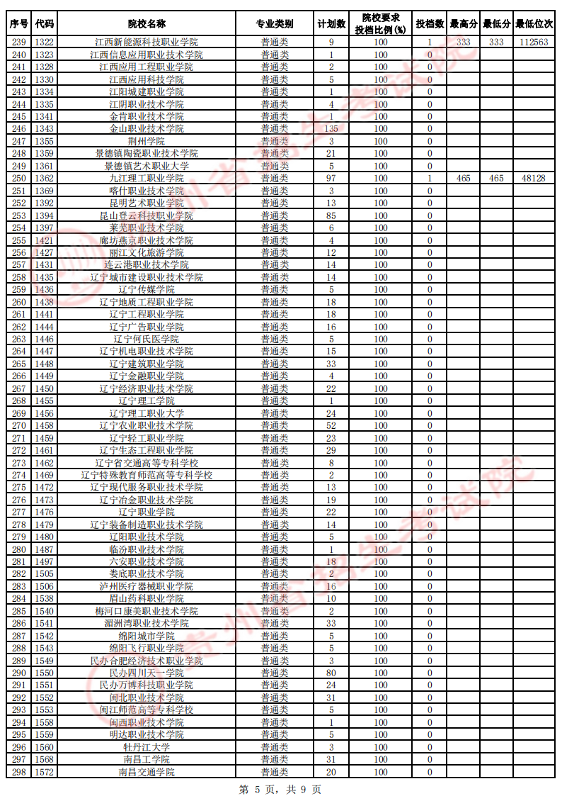 贵州省高考高职(专科)院校第4次征集志愿投档情况(理工类)