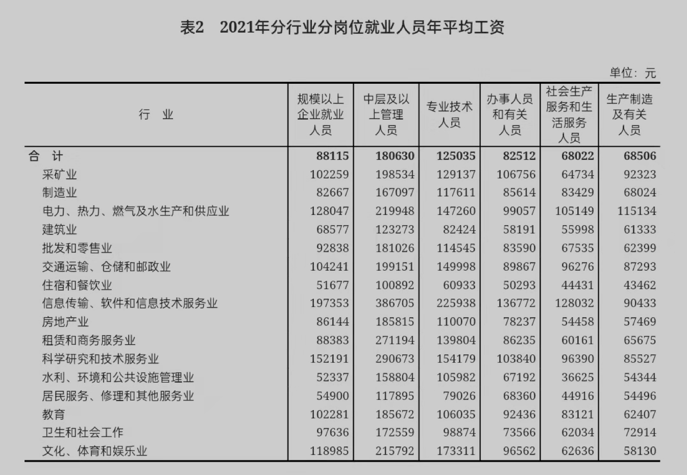 你的工资有多少?日前,国家统计局发布了2021年城镇单位就业人员平均工资数据。快来看看你所在的行业……