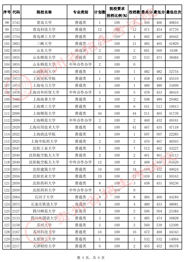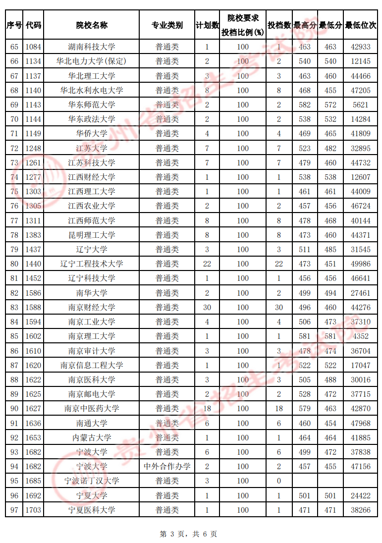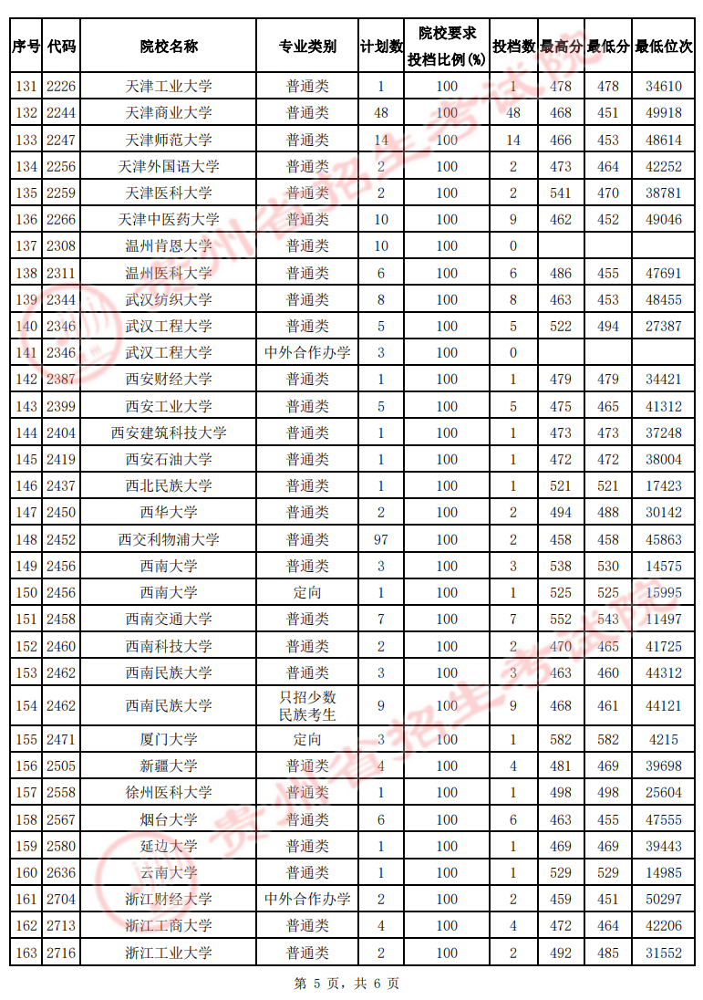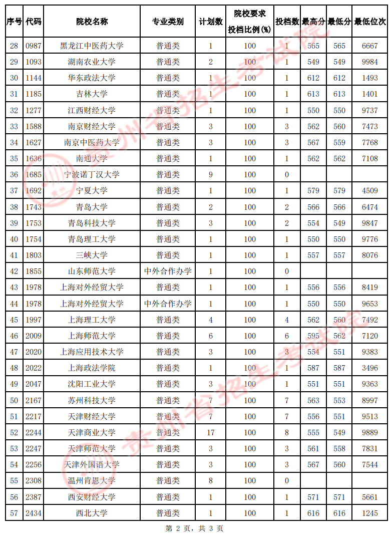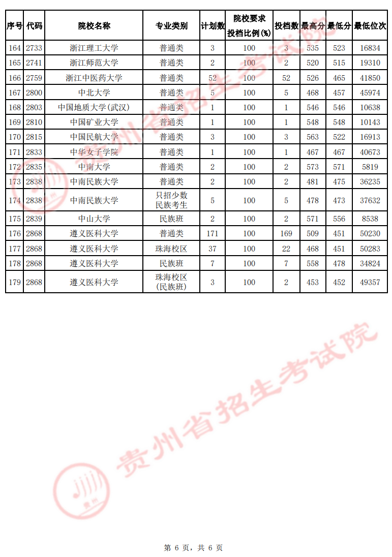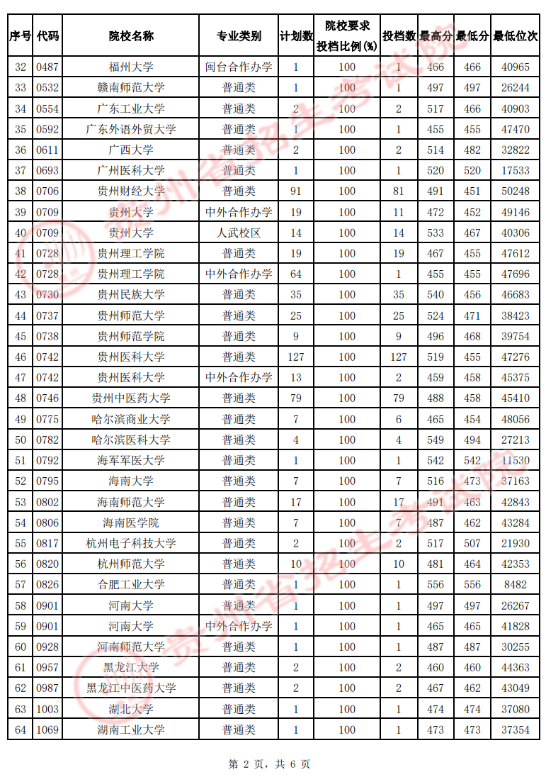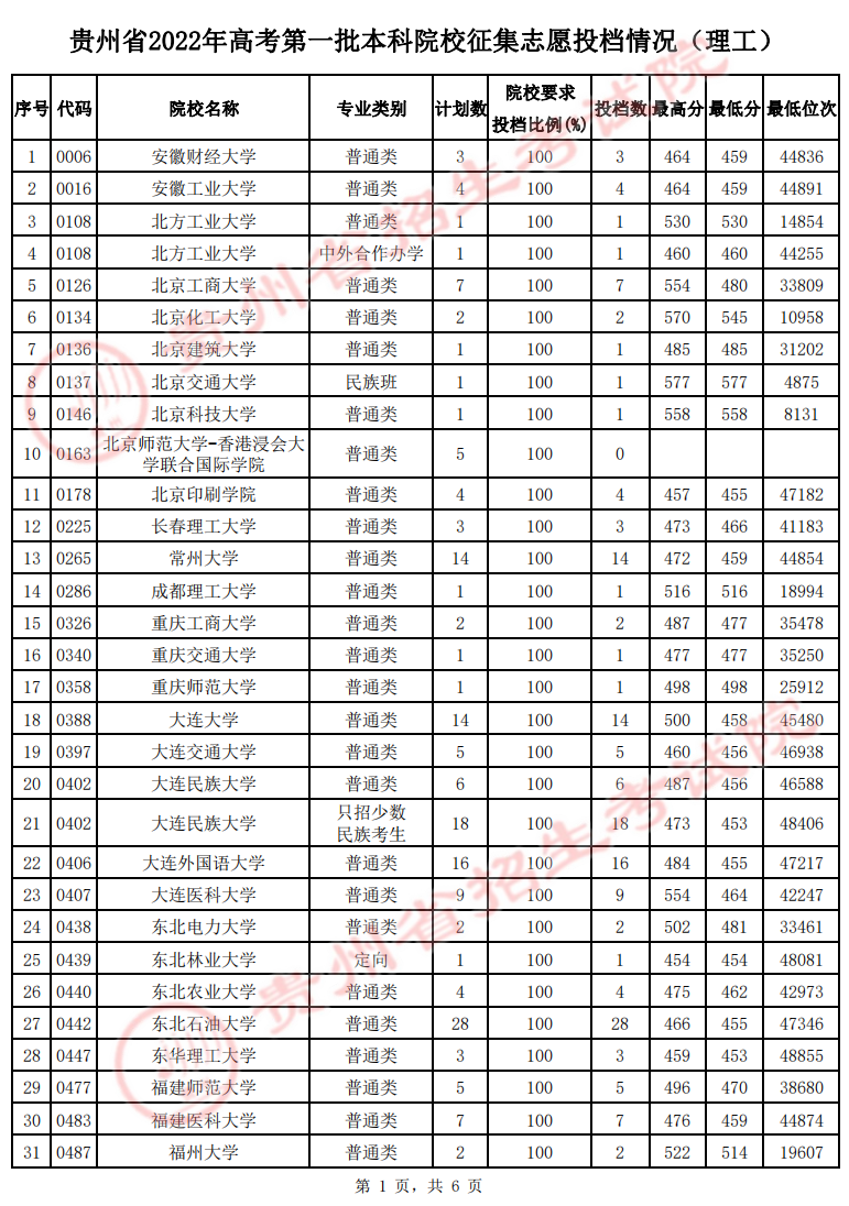 贵州省2022年高考第一批本科院校第2次征集志愿投档情况