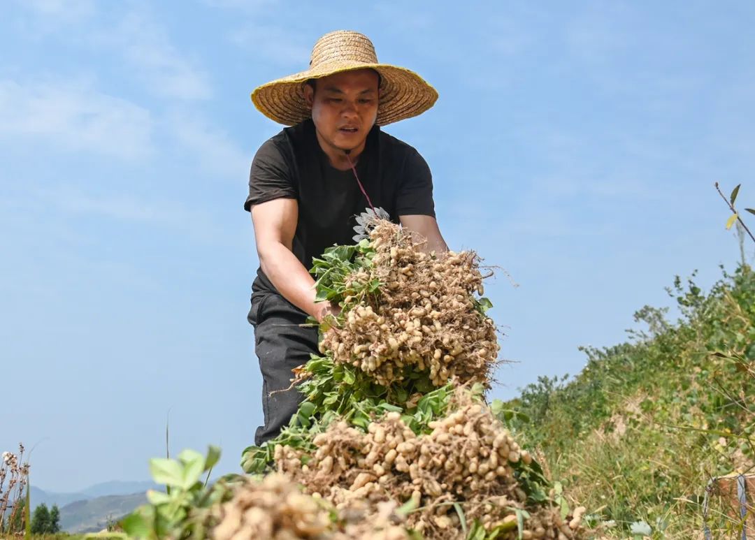 以前,牛郎镇租赁村民的土地发展油茶、油桐,村民可以获得土地流转费。2022年,牛郎镇因地制宜,重整传统产业,通过以短养长的发展模式,在油茶、油桐基地套种5000余亩花生。同时,把土地按照“返租倒包”的方式,由老百姓来具体负责花生的种植。