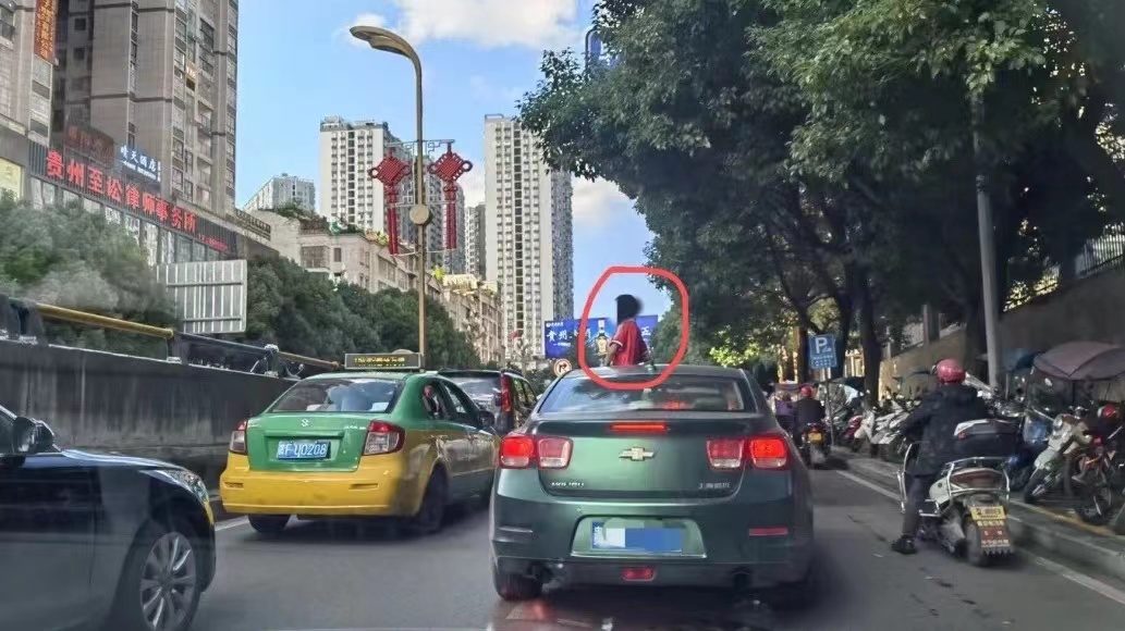 这种将身体伸出窗外的行为,不仅危险,还属于交通违法,请家长务必看护好孩子!