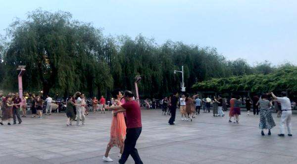 傍晚时分,苏州河畔的一角聚了十多位阿姨,伴着音乐节奏舞动着身姿。不远处就是2000人左右的居民区。居民们经过这里时免不了张望几眼。