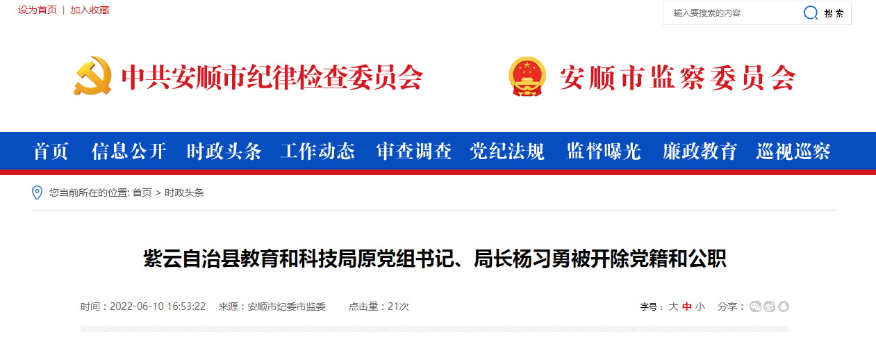 日前,经紫云自治县委批准,紫云自治县纪委县监委对紫云自治县教育和科技局原党组书记、局长杨习勇严重违纪违法问题进行了立案审查调查。