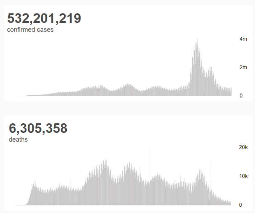 根据世卫组织最新实时统计数据,截至欧洲中部夏令时间6月10日18时09分(北京时间6月11日0时09分),全球累计新冠肺炎确诊病例532201219例,累计死亡病例6305358例。10日全球新冠肺炎确诊病例新增574365例,死亡病例新增2160例。