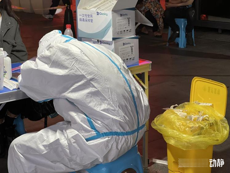 “我们差不多是连续工作了两天,很多人都一直在采样点上,只能抽空短暂休息一下。”兴关办事处的工作人员李纹告诉记者,社区虽然涉及8000人,但是青云市集的采样点却比较特殊,周边的市民都会来这个地方做核酸,所以工作量会增加很多。