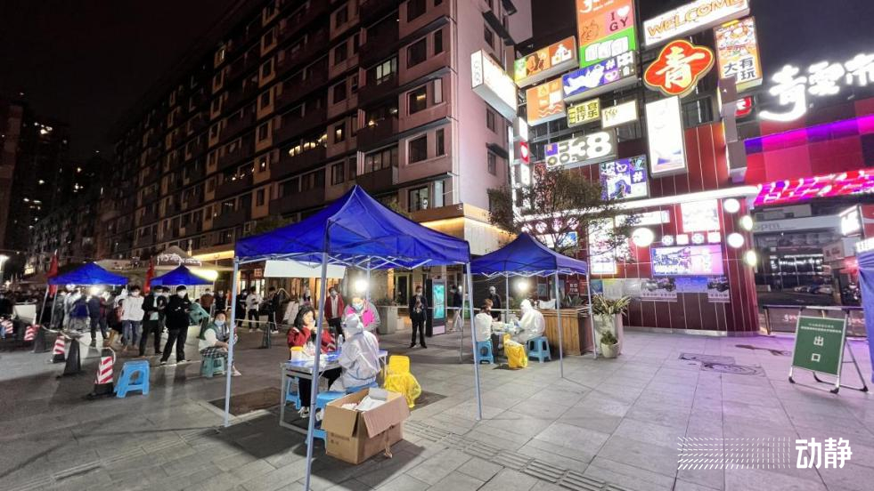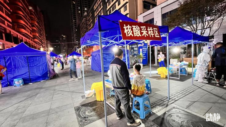 昨天(9月4日)晚上11点,气温骤降,还下起了零星小雨。但当记者来到贵阳市南明区青云市集时看到,现场亮着灯,老百姓们有序地排着队,6个采样台10多个工作人员正忙着做核酸。