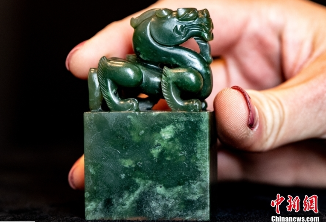 ▲当地时间5月19日,法国巴黎苏富比拍卖行展出中国清代乾隆时期的印章,将于6月16日拍卖,估价在10万至15万欧元之间。
