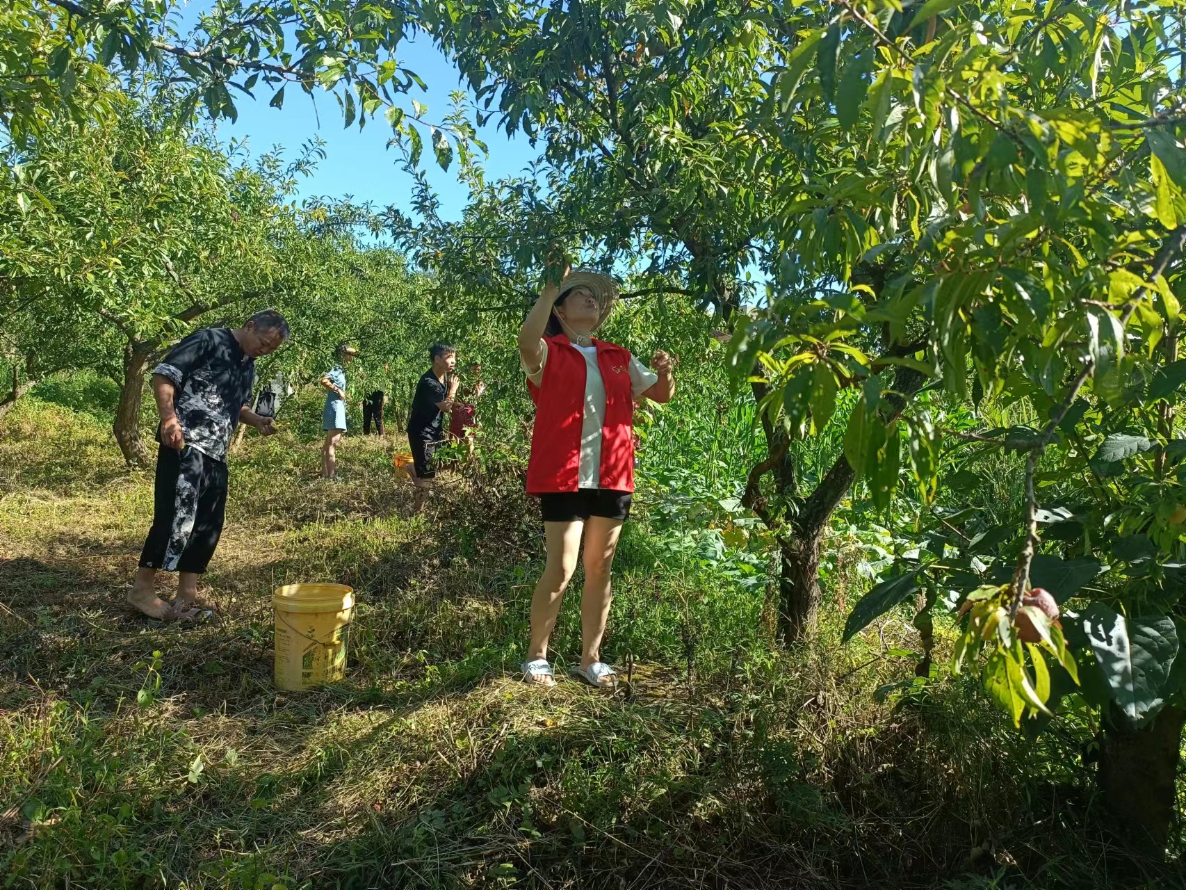 李子树下红衣飘,感人事件少不了。茶香村鸡场坝组、冷冲组、指路碑组共计种植李子1000余亩。为了不耽误采收,这几天,茶香村“刺梨管种收志愿服务队”的志愿者都在果园里忙碌着。“有的种植户家中只有小孩和老人,若不及时采收,李子就坏在地里了。所以我们相约一起来帮忙摘果子,并通过‘请你来商量’协商议事邀请新乡贤和爱心企业通过抖音、朋友圈等平台进行线上销售,日均售卖1000余斤,每日为群众带去收入5000余元。”志愿者刘兆琴介绍说。