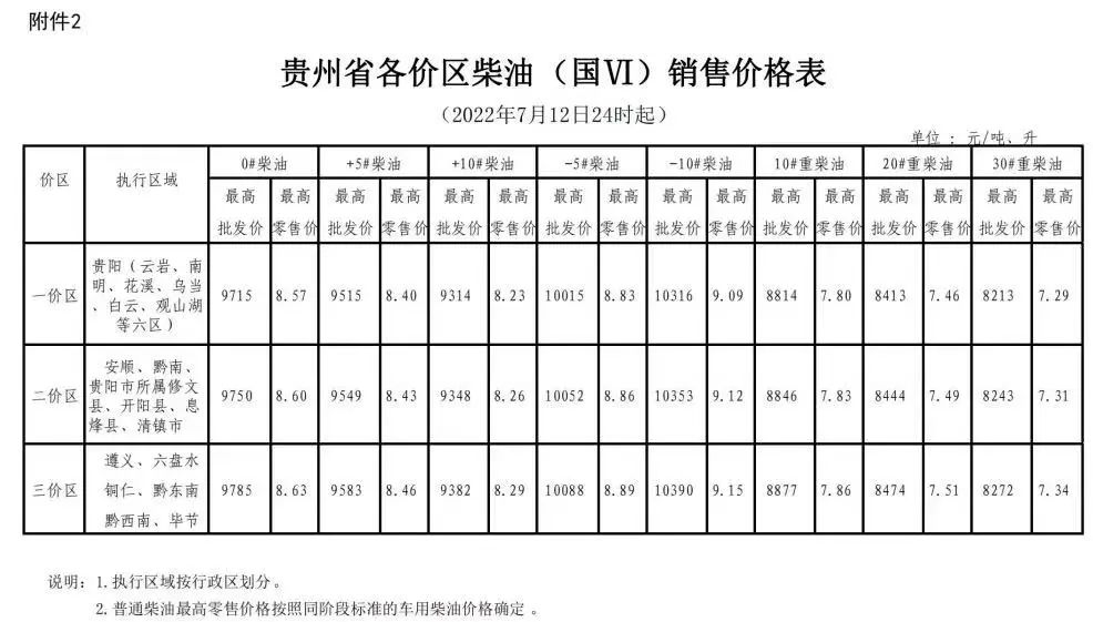 根据国家成品油价格形成机制,国家发展改革委决定自2022年7月12日24时起下调国内成品油价格。按照国家相关调整要求,我省89#汽油(国VIA)、0#柴油价格每吨在现行标准基础上分别降低360元和345元,具体价格可由各经营企业在不超过最高批发、零售价格的前提下确定。调整后各油品具体最高价格见附件。