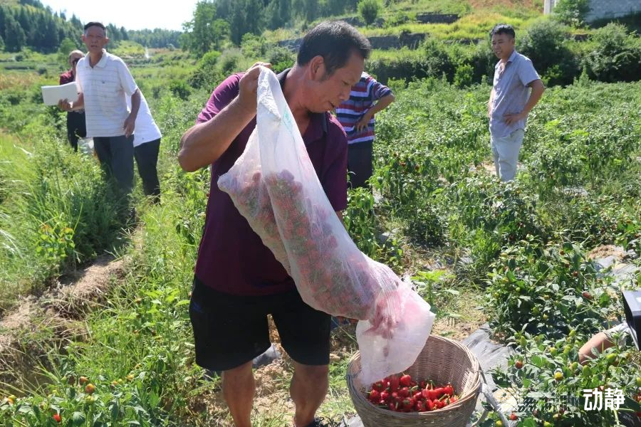 “近段时间,由于持续高温,导致辣椒成熟快,一天不采摘就有可能因缺少水分掉在地上,造成缺失,所以我们每天必须组织劳动力采摘,确保应采尽采。”塘坝村辣椒种植大户黄大权说。
