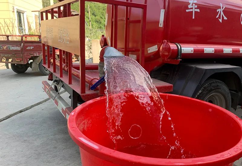 新建镇党员干部利用消防车,把清澈干净的水运到缺水的村组,解决当地群众生活用水难题。在该镇太和村正品组,一辆洒水车停在那里,村民们正提着大桶小桶,推着小推车从家里赶过来排队领水。党员干部熟练地打开设备,将水注入到村民的各种储水容器内。