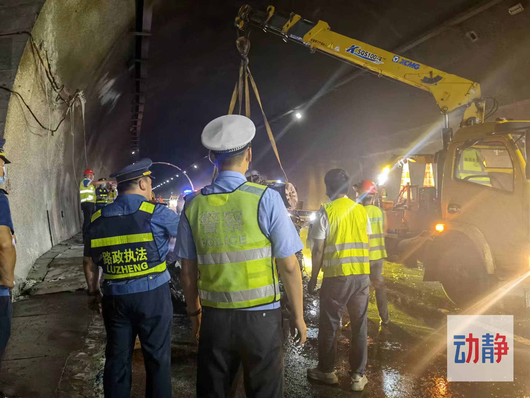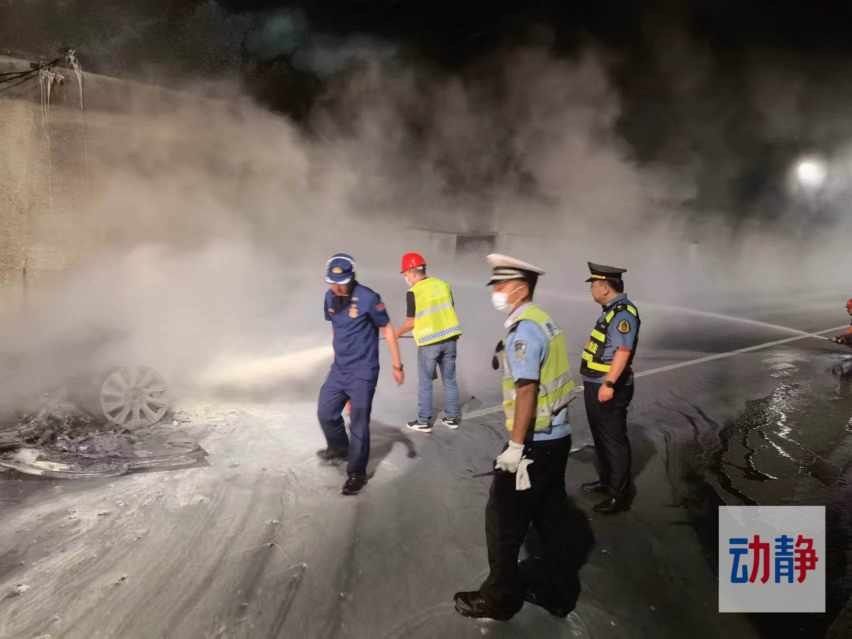 现场执法人员告诉记者,到达现场后,隧道内浓烟滚滚,无法看清前路,情况十分危急。“我们立即启动应急预案,规范摆放锥形桶,设置警示标志,避免发生二次事故。”