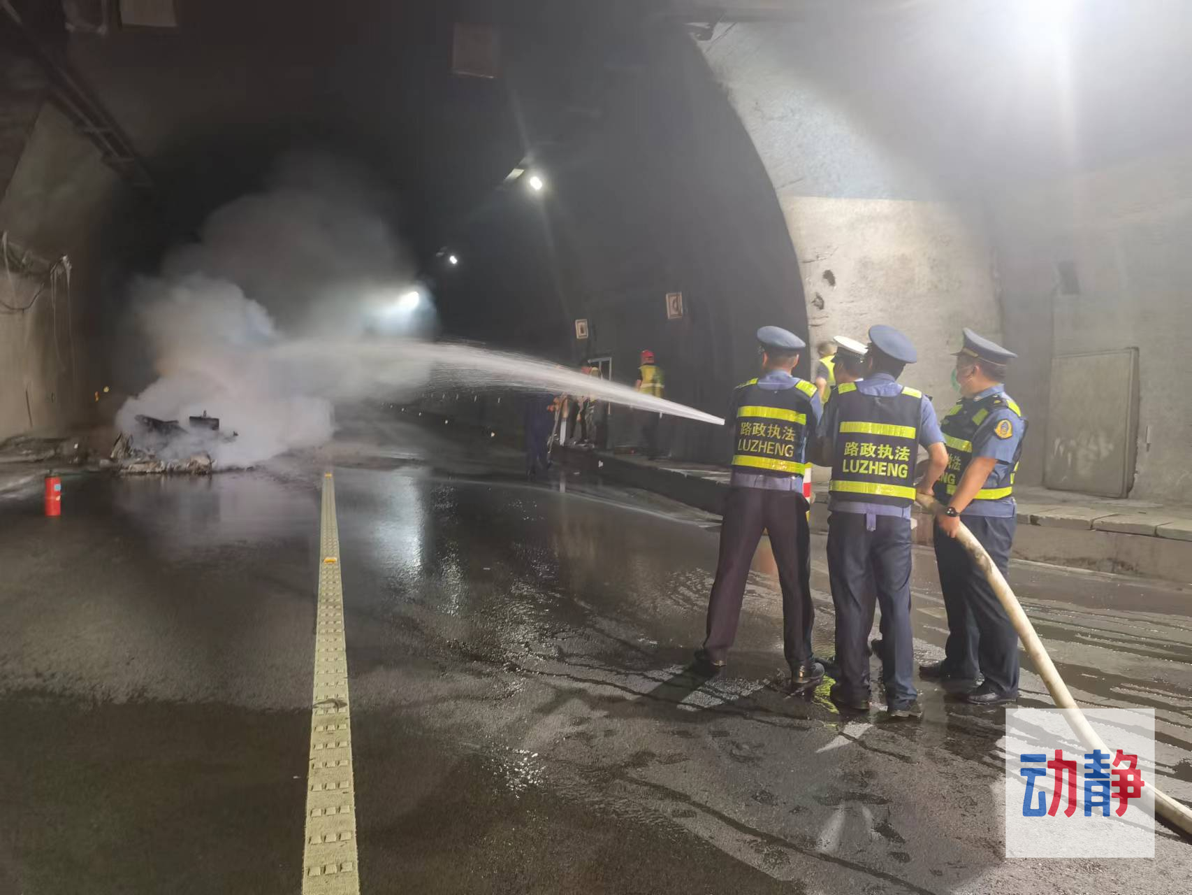 随后,执法人员联合交警、养护等部门展开救援清障工作,组织人员先引导车辆至杨家湾收费站下站,保障过往车辆安全,随后快速来到事故地点平山隧道上行k39+700处进行火情扑灭。据了解,此次事故是由于车辆自燃,目前无人员伤亡现象,事故原因待进一步调查。