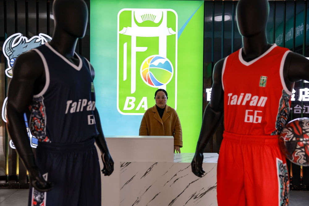 ↑3月25日,工作人员在“村BA官方线下体验馆”内。