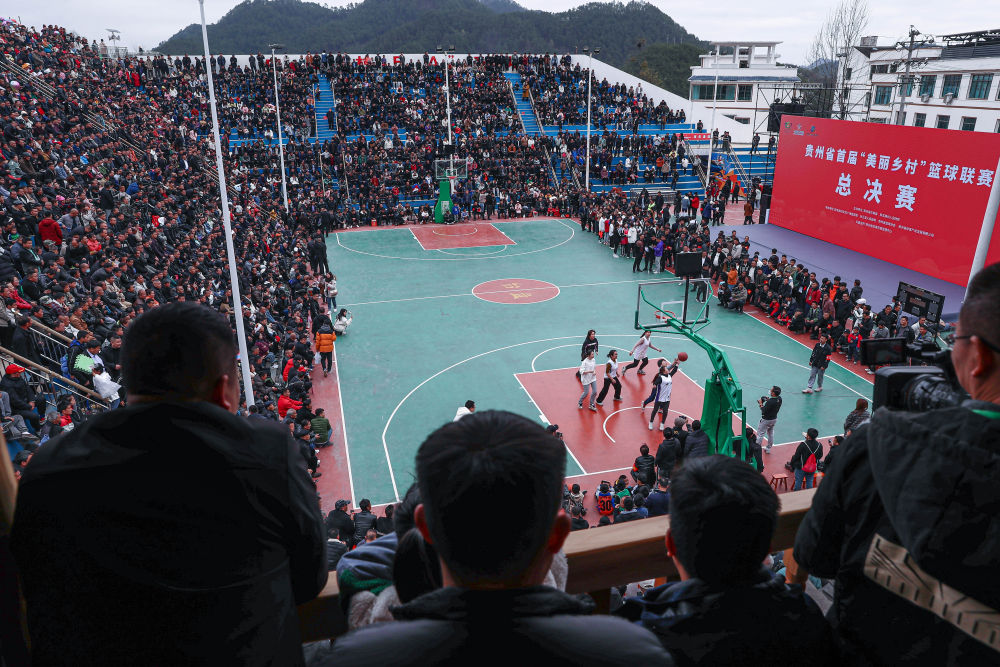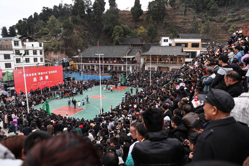 ↑3月25日,村民们在决赛前抵达现场观看暖场比赛。