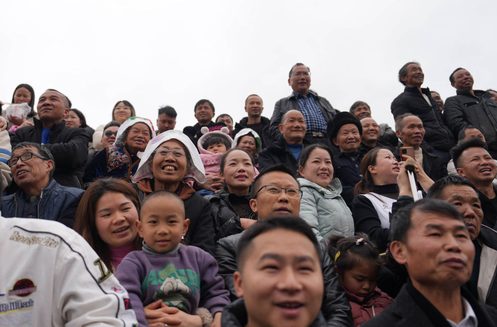 “‘村BA’开始咯!人太多,不踩梯子看不到噻!”