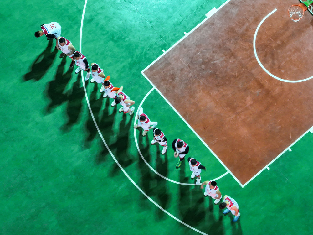 ↑铜仁队在比赛前入场(无人机照片)。新华社记者 欧东衢 摄
