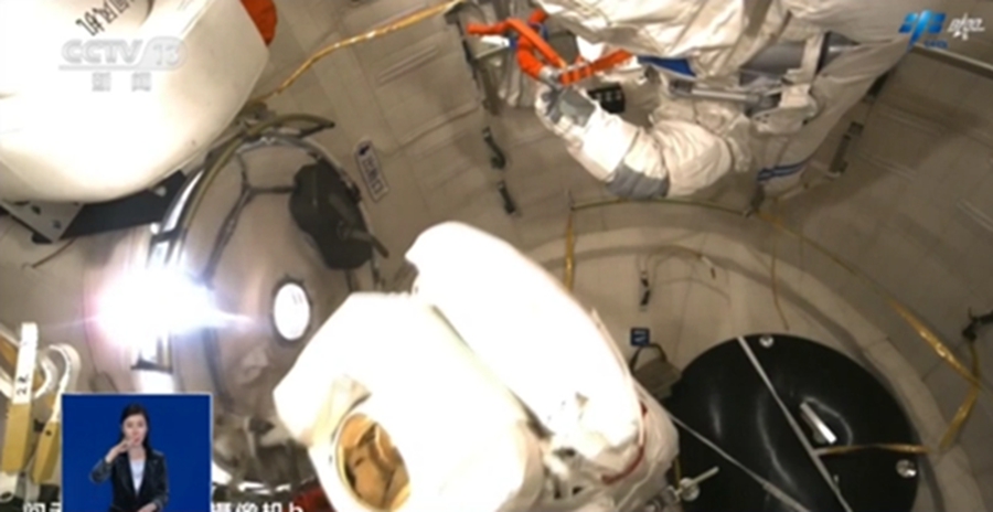 在地面工作人员和舱内航天员邓清明的密切配合下,两名出舱航天员费俊龙、张陆圆满完成全部既定工作,安全返回问天实验舱。
