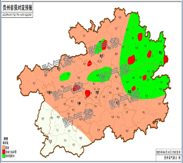 根据最新象资料分析,明天(17日)傍晚到18日白天,贵州北部和东部部分地区将有冰雹、大风、短时强降水等强对流天气,部分乡镇有暴雨。