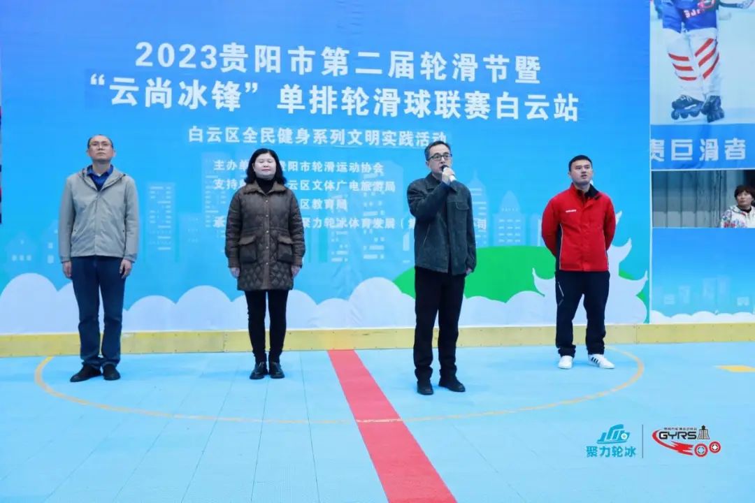 白云区文体广电旅游局党组书记杜晓峰,白云区人民政府督导室副科级督学陈兴梅,白云区文体广电旅游局体育发展中心主任樊振义,贵阳市轮滑运动协会秘书长朱洪章参加开幕式。