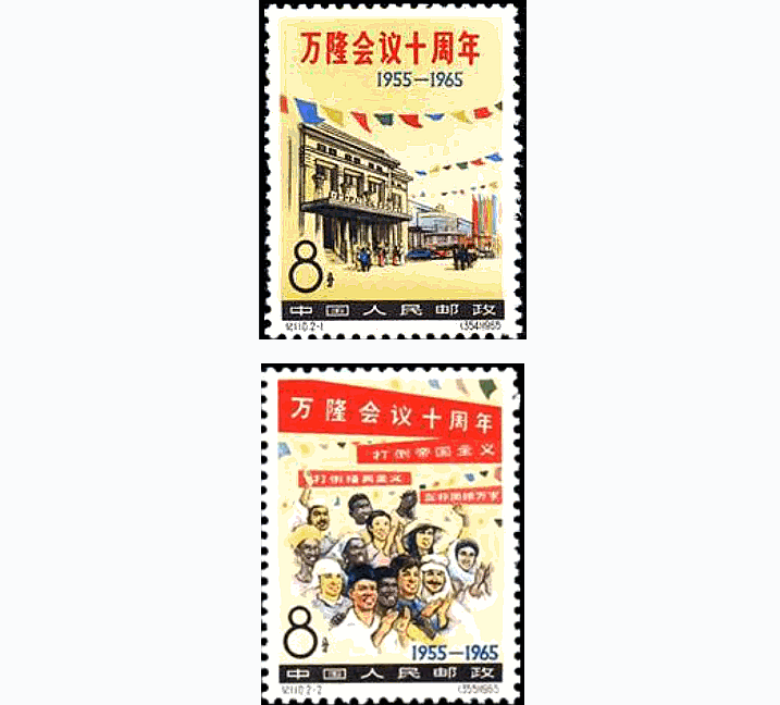 为纪念这次历史性会议,中国邮电部于1965年4月18日发行《万隆会议十周年》纪念邮票,一套2枚,全套面值0.16元。邮票由万维生设计,北京邮票厂印制。