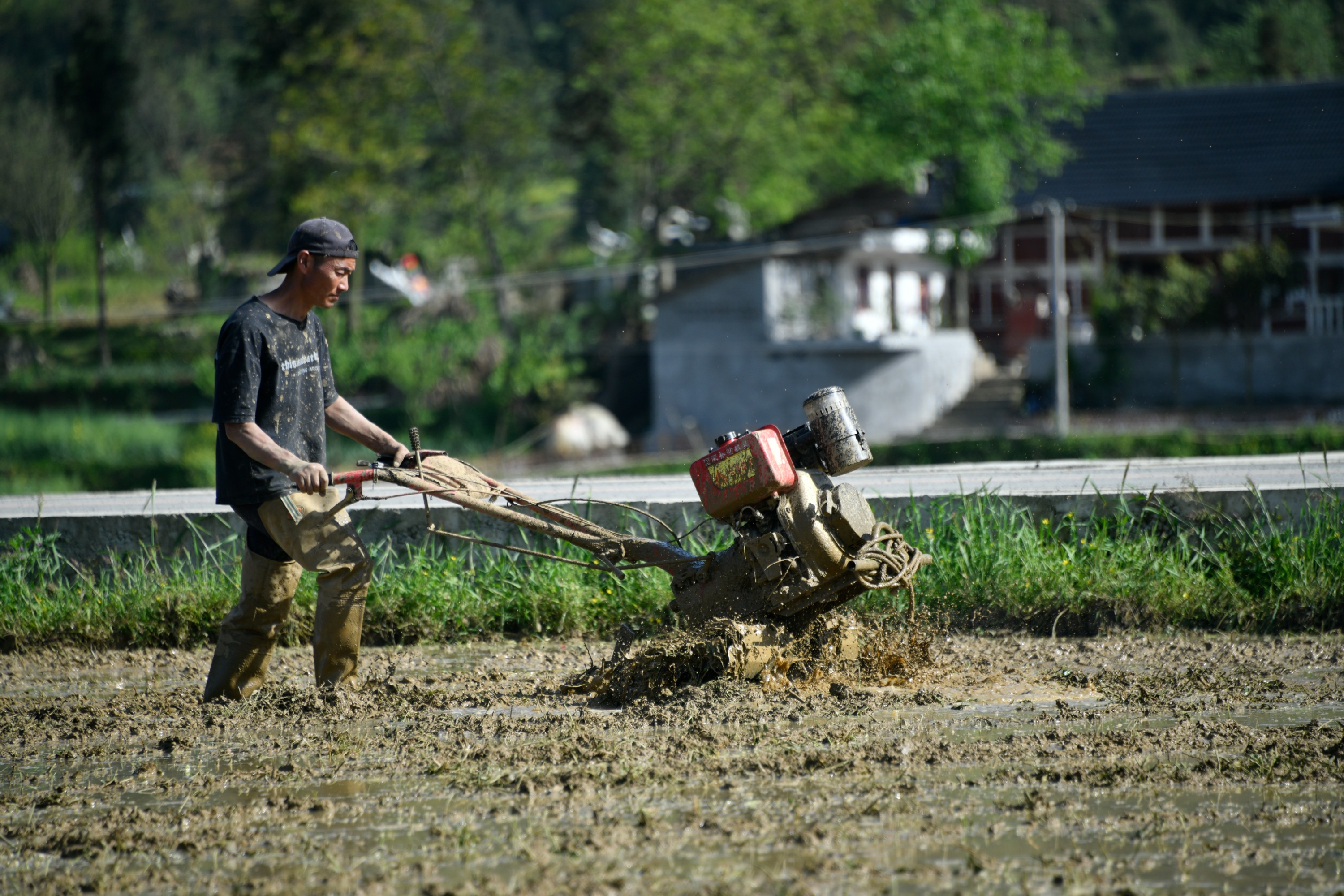 4月7日,在百里杜鹃管理区黄泥乡朝门村,备耕群众正在田间地头忙着起垄、施肥、播撒稻种、搭盖育秧棚,为新一年的增产增收做准备,田间地头呈现出人勤春早的乡村美景。
