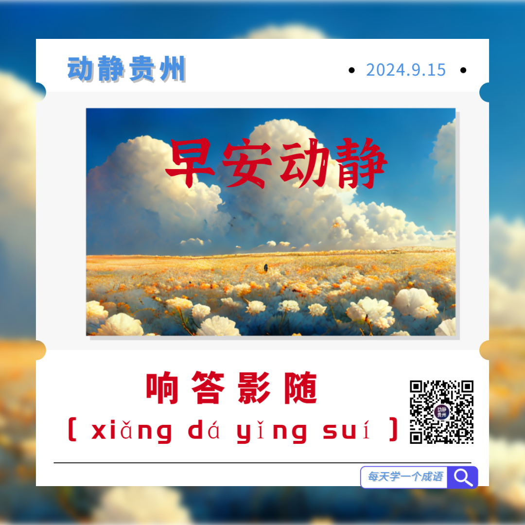 今日成语:响答影随释义:意思是如应声和答,形影相随,比喻两者紧密相连。