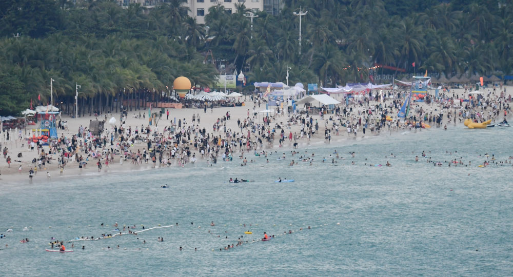 10月4日,三亚市大东海旅游区游人如织。新华社记者赵颖全 摄