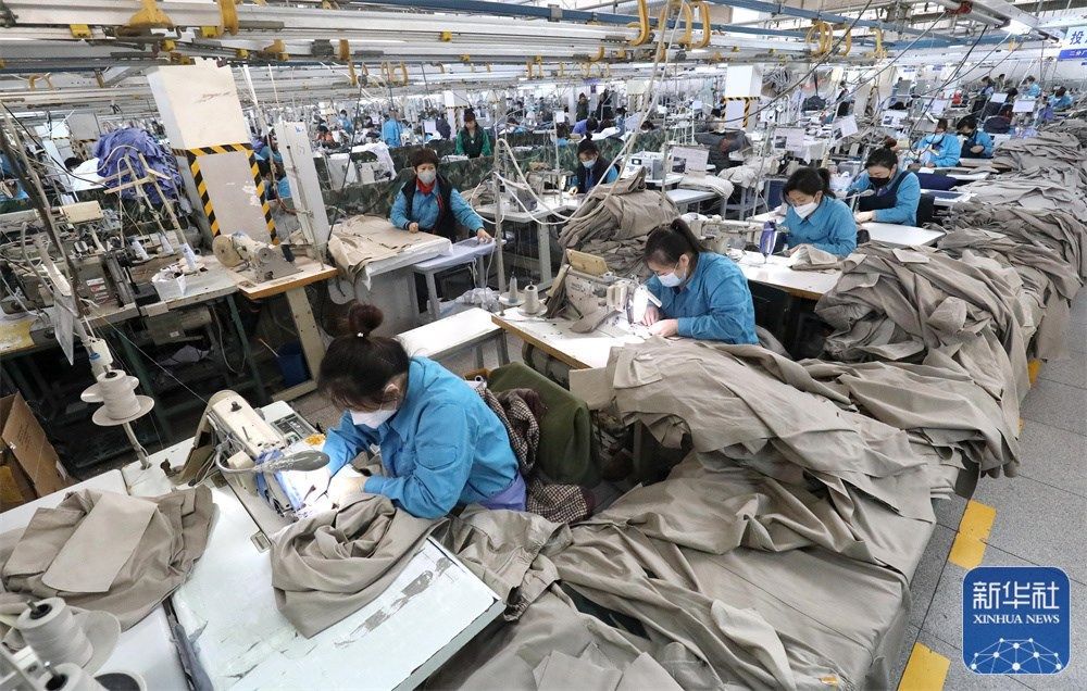 1月3日,在河北省石家庄市井陉县一家服装企业,工人在生产线上工作。新华社发(梁子栋摄)