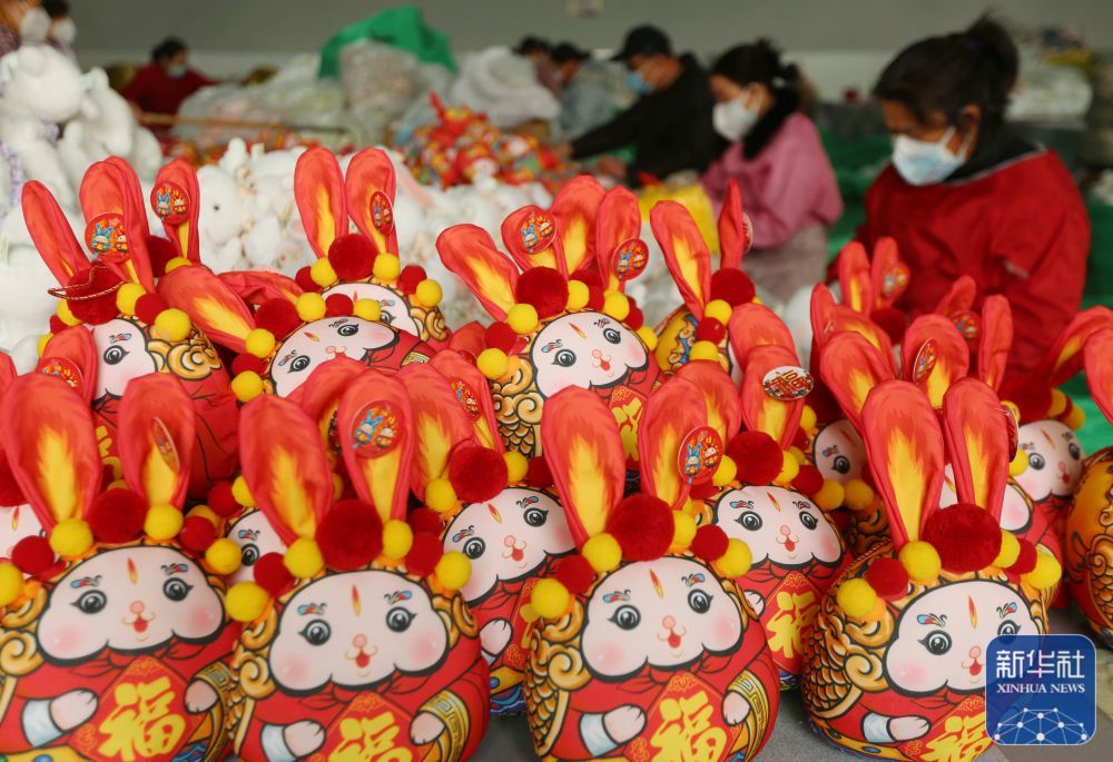 1月3日,在山东省临沂市沂南县一家玩具企业,工人在加工“萌兔”玩具。新华社发(王彦冰摄)