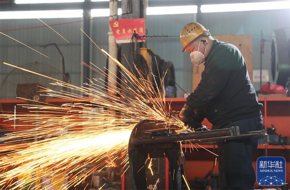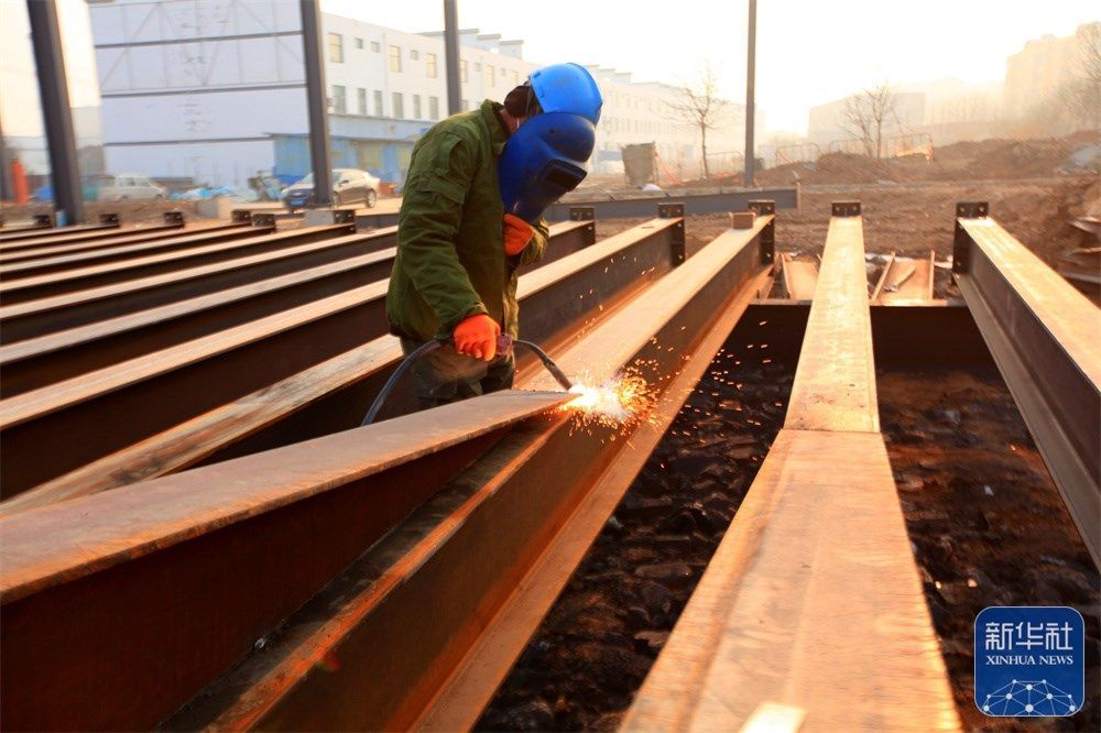 1月3日,工人在山东省临沂市平邑县一处建筑工地焊接钢材。新华社发(武纪全摄)