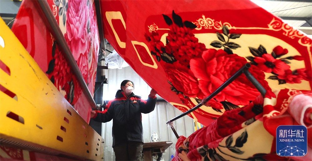 1月3日,工人在江苏连云港高新区海州工业园的一家毛毯企业忙碌。新华社发(耿玉和摄)